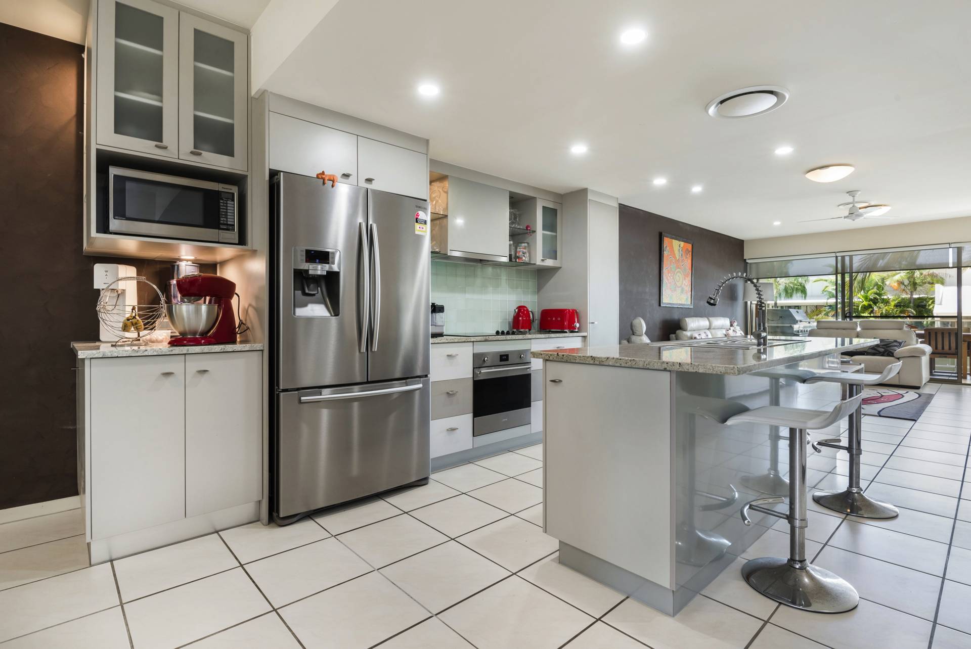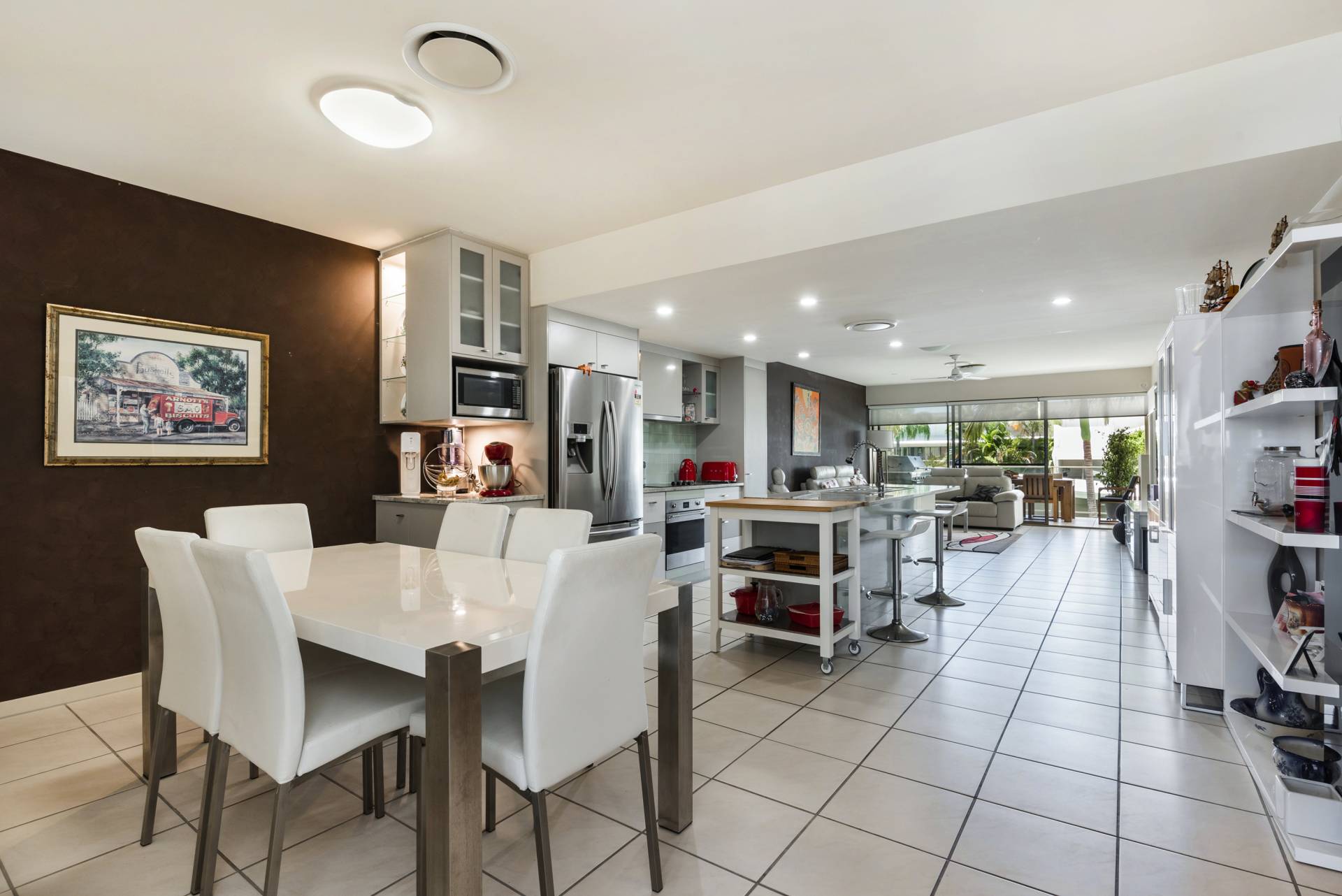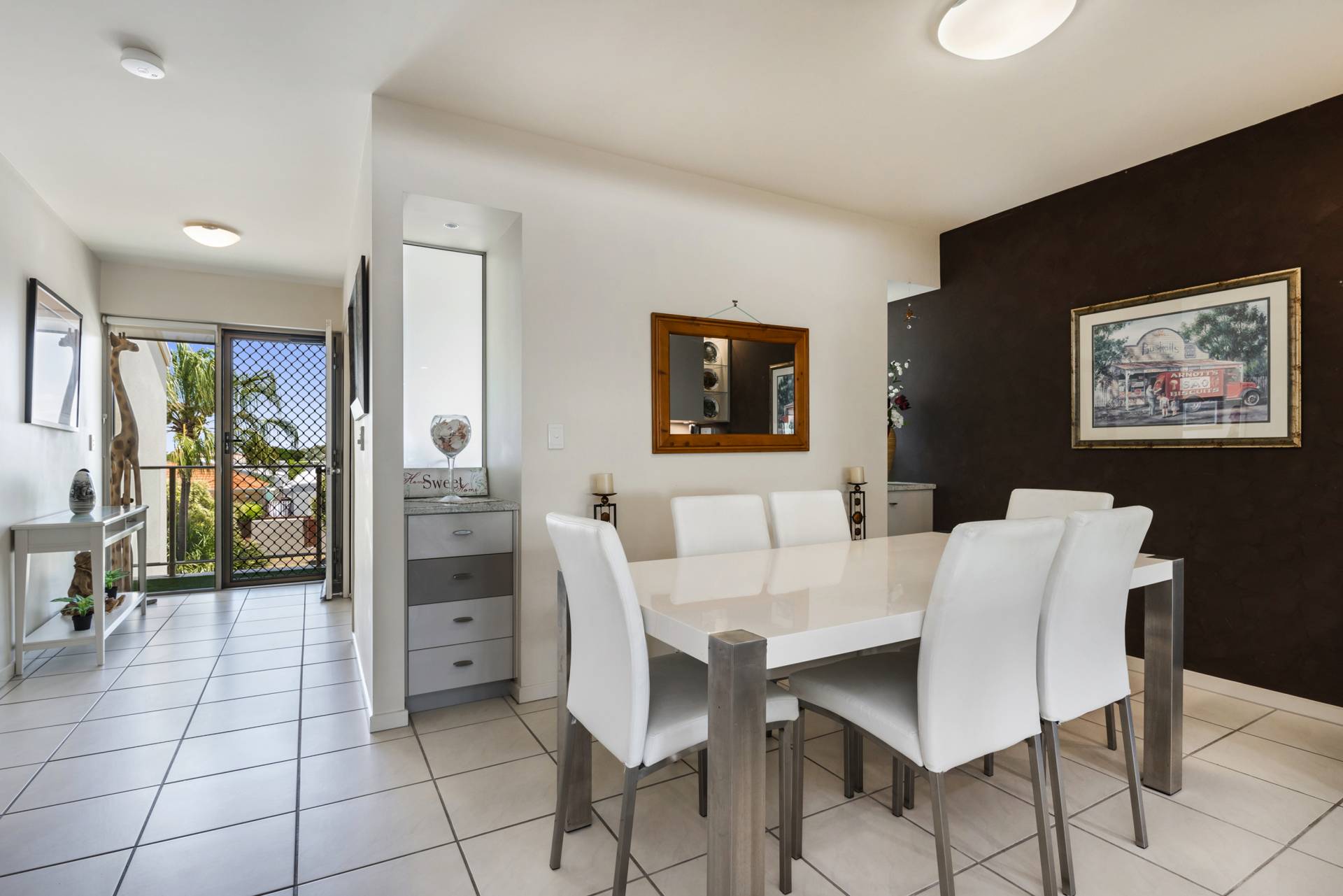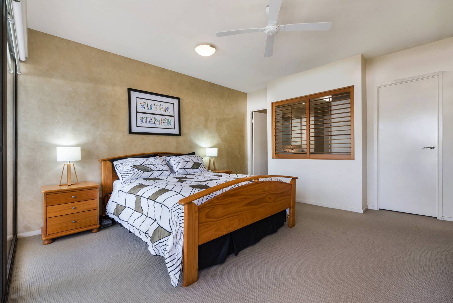 This top floor unit at Leeward Apartments is sure to impress as it has 2 large north facing balconies and set in a private area overlooking the gym so no units directly opposite but a lovely pleasant view to your left over the Pool, Spa and tropical surrounds.  There is also another square shaped undercover area to sit and relax on southern balcony entry which is quite unique to all the other apartments at Leeward as they don't offer an area this large through gated entry so its definitely an added bonus. It has fully ducted air-conditioning and remote control blinds in living area and master bedroom which are pretty awesome! It also has one car park fully built in with a remote control so it can house a small car or do what the owners have done and use as a very large storage shed and work bench.  The kitchen cabinetry has been extended to include a space for the microwave oven, utilities along with much more and there has been a tap installed under the sink so that you can connect up a hose to make it easier to clean your balconies. It is fully screened and also has a fan installed on balcony off main bedroom and another casual area to sit and relax.