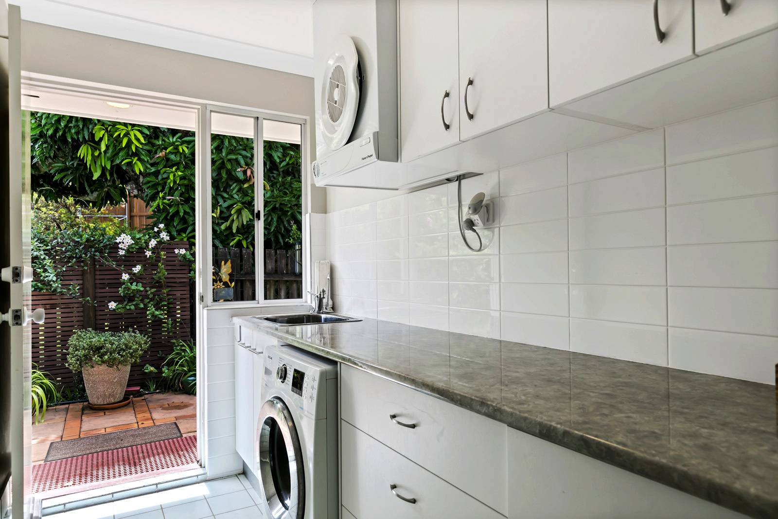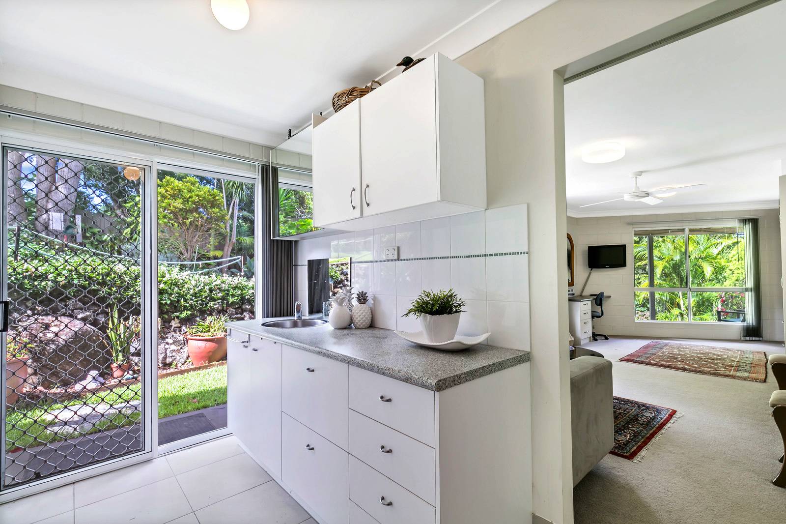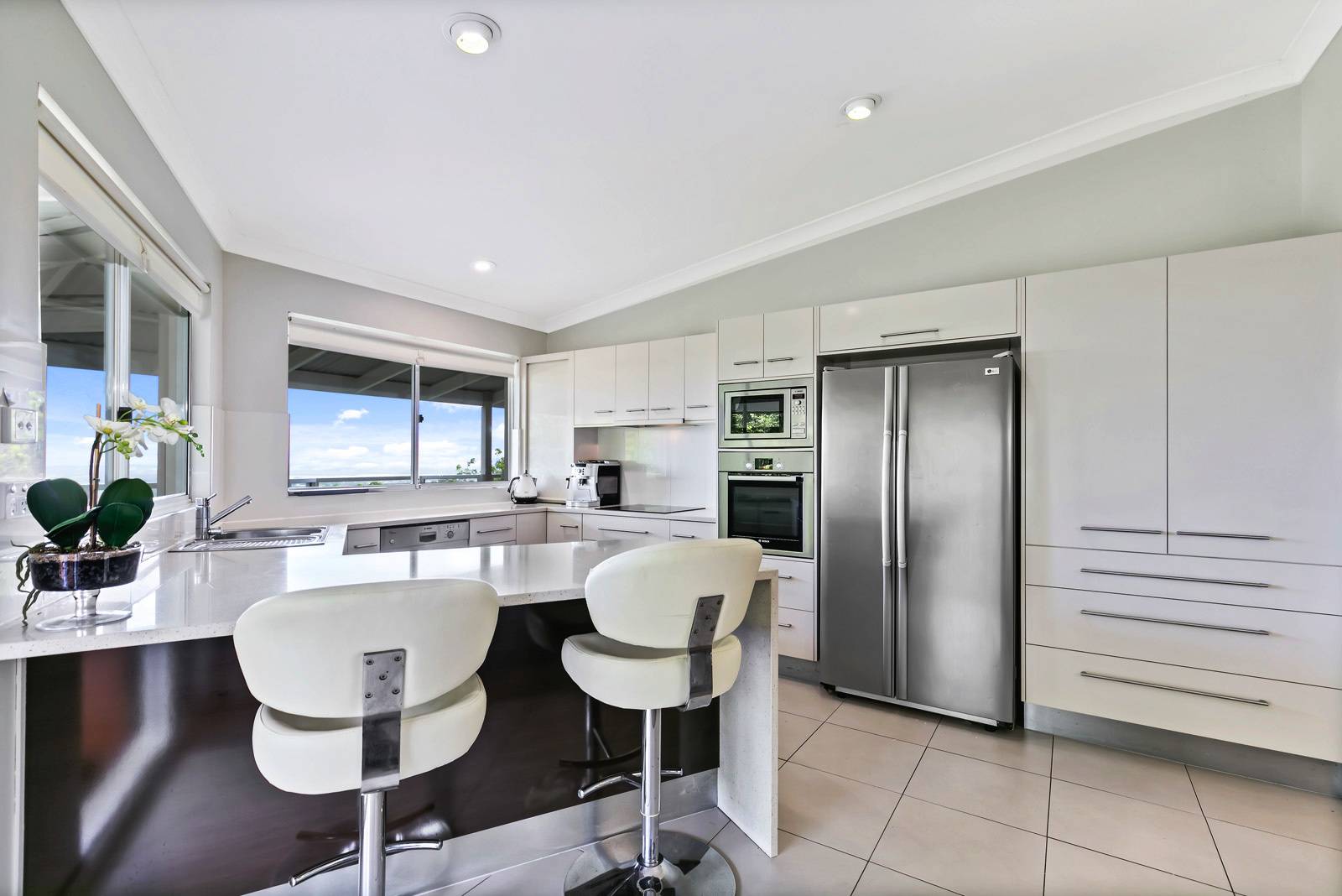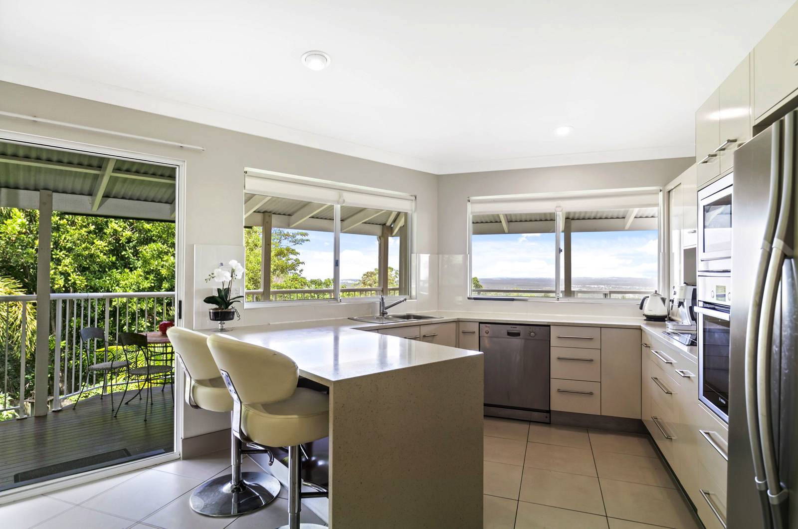 * You'll love to cook in the moden kitchen with its abundance of cupboards, stone benchtops, induction cooktop, bosch dishwasher, and stainless steel appliances - but best of all you'll love the view.