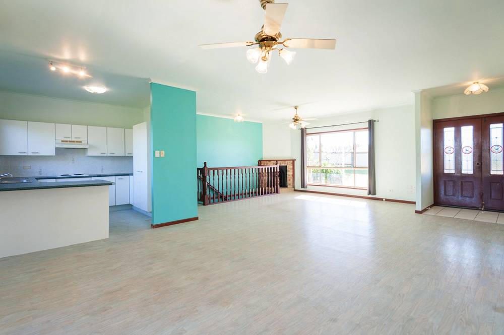 * An open plan kitchen, living and dining, opening out onto a covered deck with beautiful views