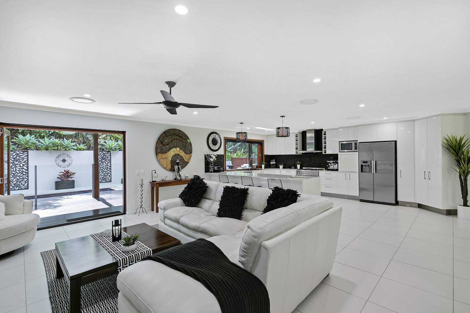 Spacious open plan living overlooking an expansive covered alfresco entertaining area flowing out through timber byfold doors to a magnesium plunge pool.  The ultimate area to celebrate all occasions.