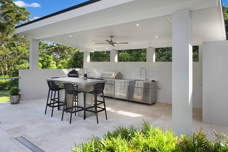 A highlight of this home is the Grand outdoor entertaining area. It features a cedar lined roof, full outdoor kitchen with Kamado Charcoal oven, BBQ, wine fridge and sink with hot water. You will be hard pressed deciding whether the heart of your home is the kitchen within or the kitchen overlooking the pool.