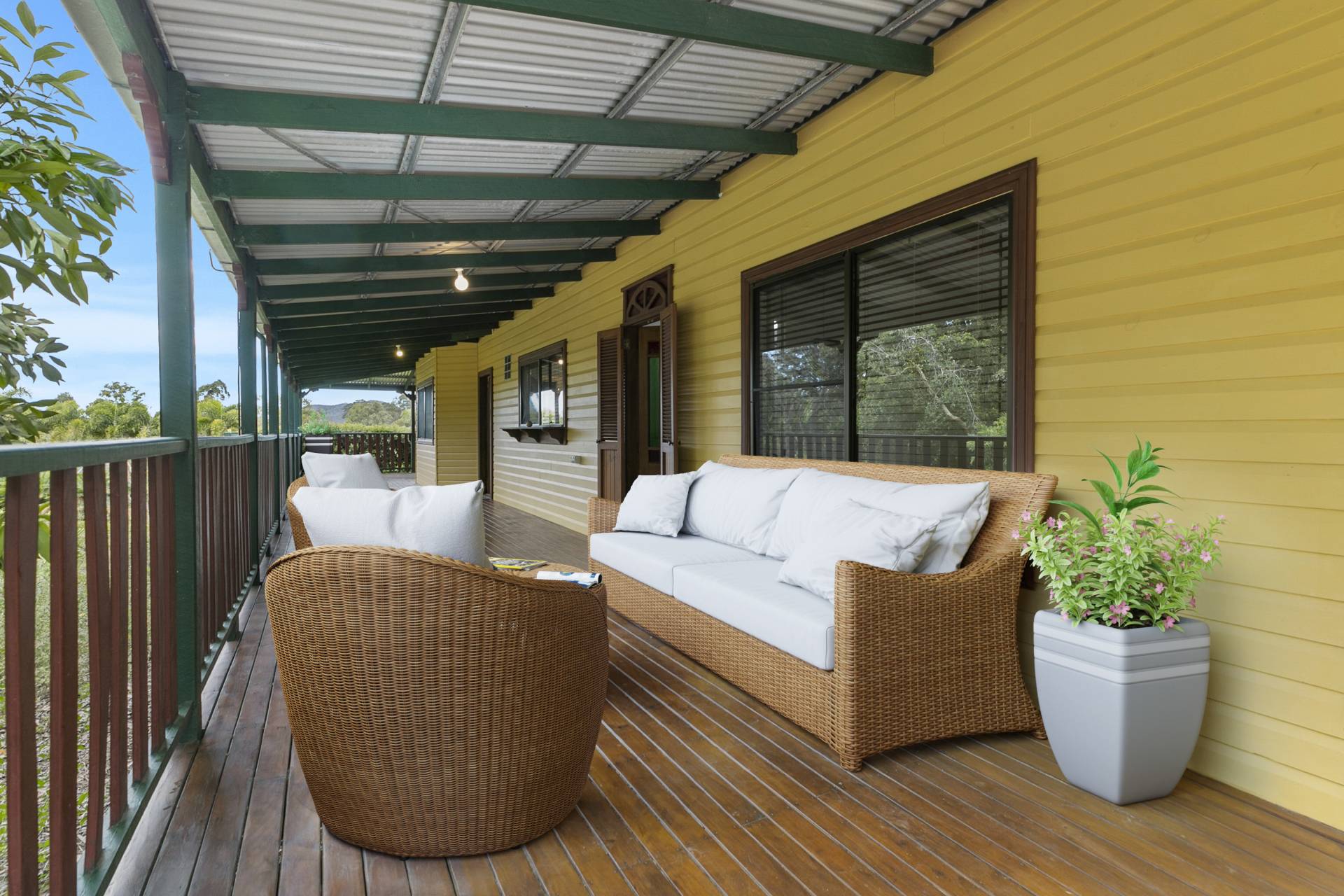 Old world, romantic charm beckons. Hidden amongst a landscape dotted with attractive trees and distant views of the Glasshouse Mountains this is a peaceful setting.