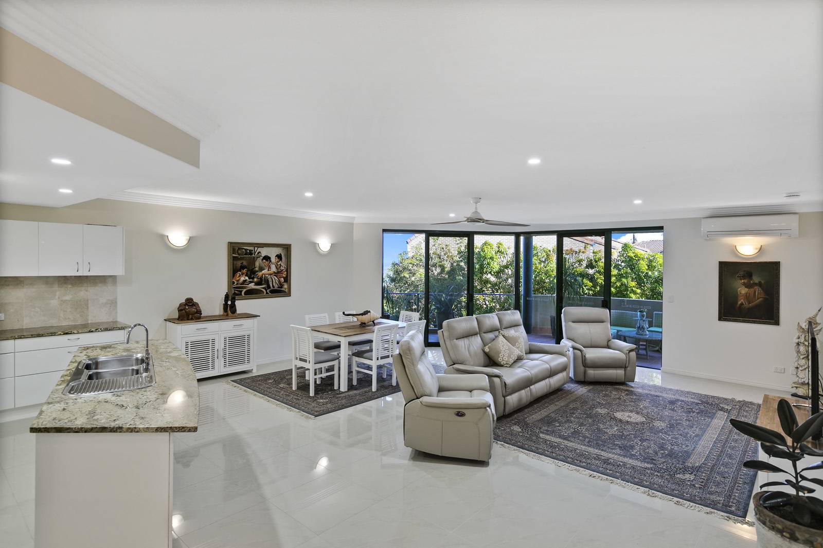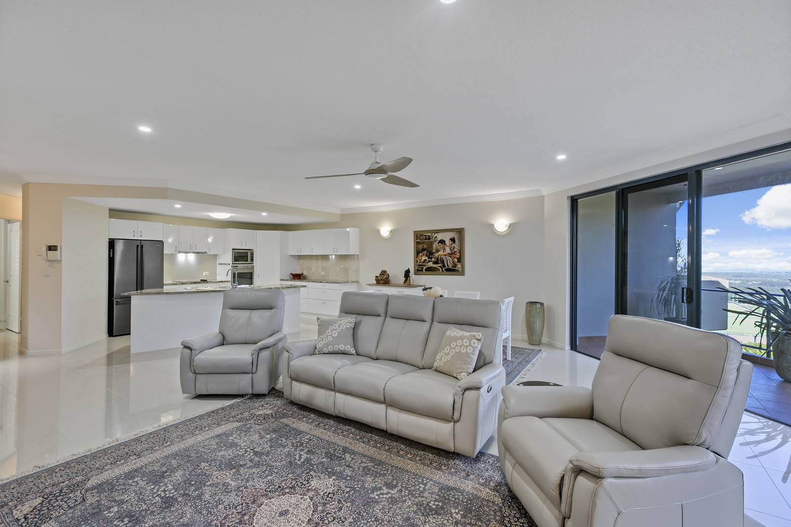This stunning airconditioned property offers a relaxed open plan layout, high ceilings, seamlessly opening onto a wide covered veranda to enjoy the cooling breezes, breathtaking views, and a vista of twinkling lights at night.