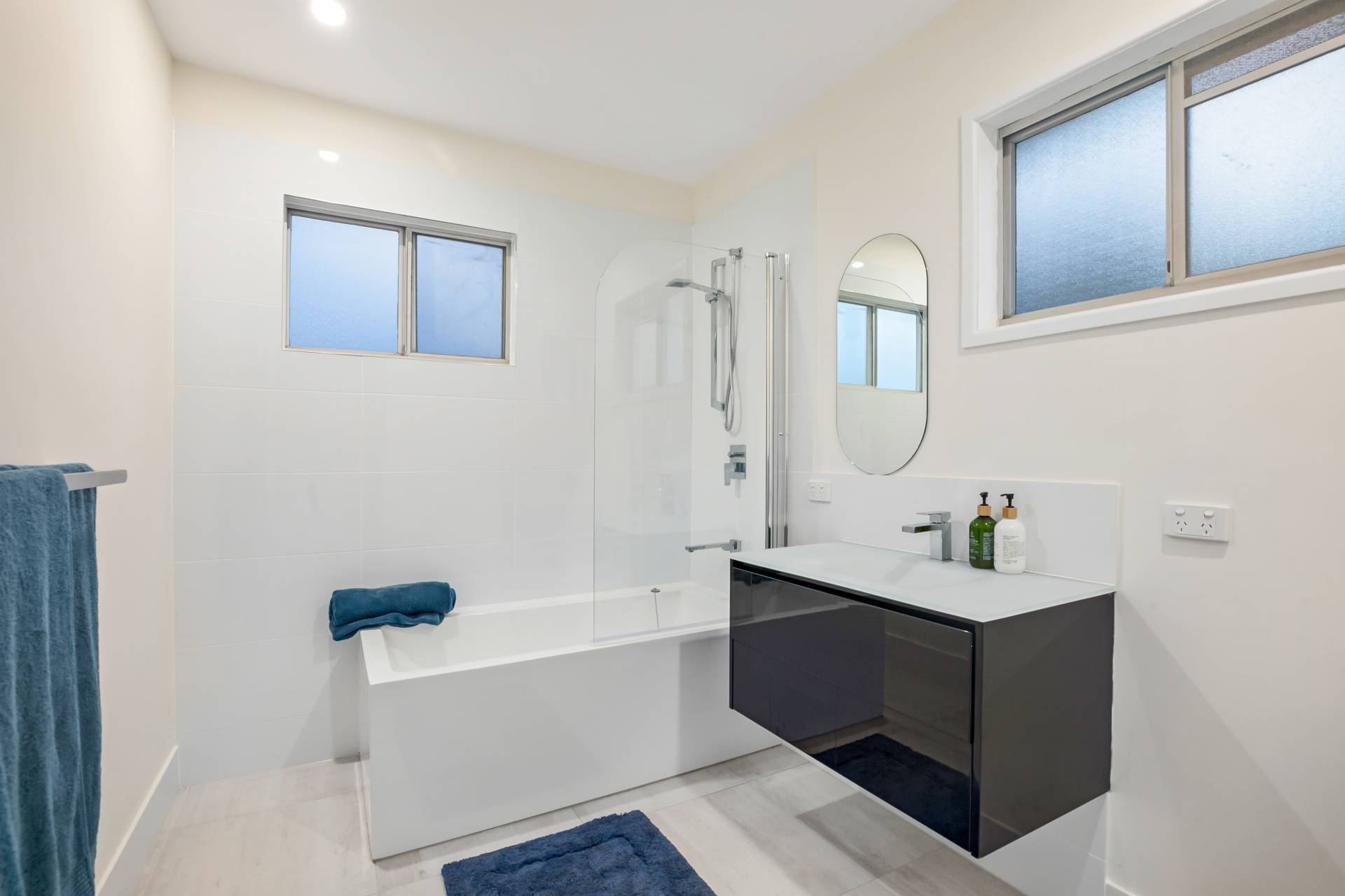 Cross the breezeway to the Guesthouse. A comfortable 2 bedroom, open planned kitchen/ lounge and dining room with modern bathroom. It could be purposed for guests, elderly parents, young adult children, a generous home office setup, beauty salon, kids play & study zone, or generate an income with Airbnb.