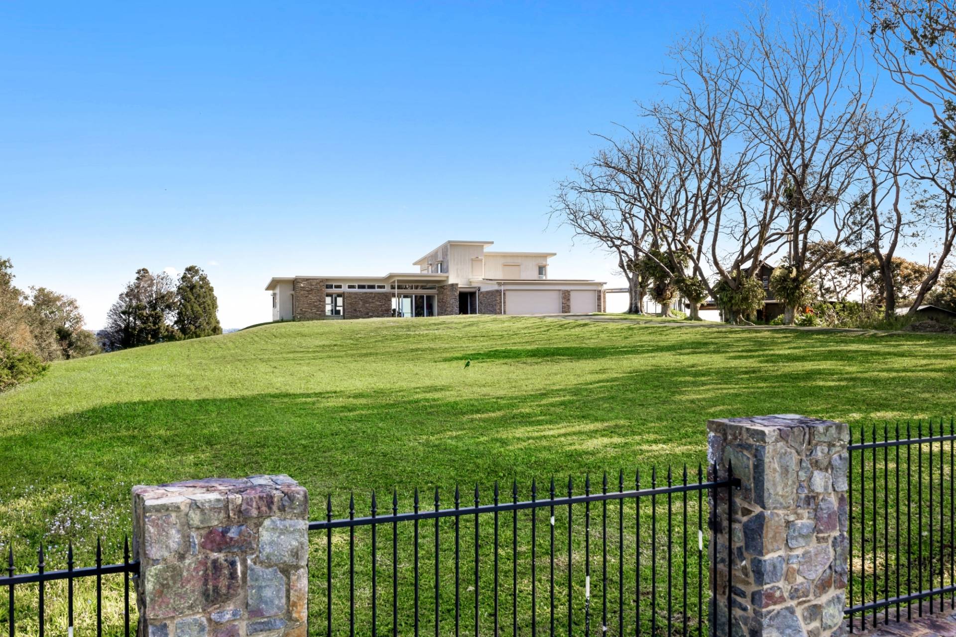 Its own service road leads to a stately entry that features a stone and wrought iron fence. The driveway lined with aged pecan trees gives a feeling of grandeur appropriate to the class of this property. The epitome of hinterland acreage living. Elevated, private, and burgeoning with potential.