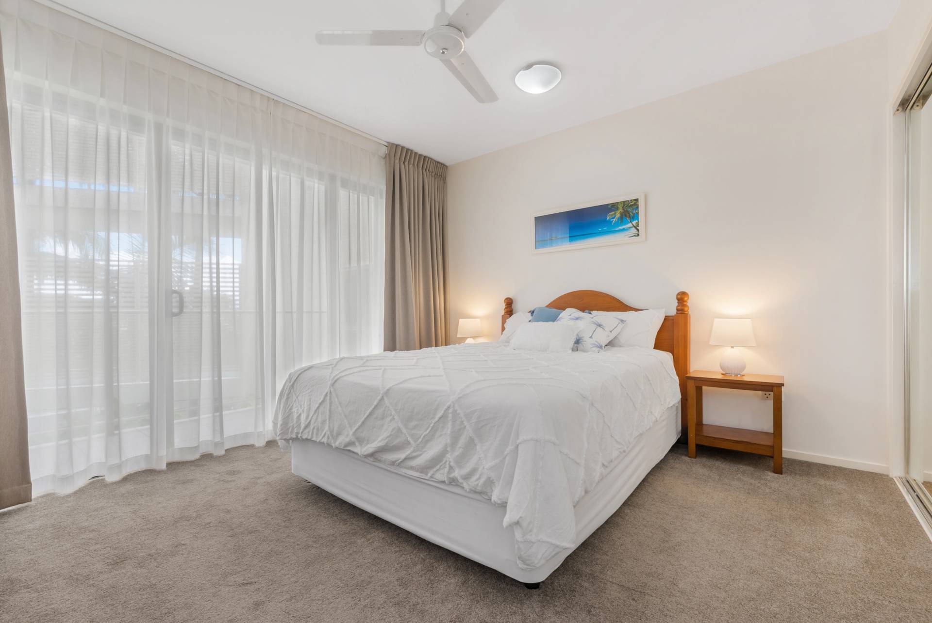 This lovely apartment is situated on the 2nd floor on the eastern side of Leeward Apartments capturing the ocean breezes with its large open plan; spacious balconies and glass doors that open up from all bedrooms even larger push back doors from master and living room on the north side to 2 massive direct north facing balconies.  New ducted air-conditioning has just been installed and there's new curtains in all 3 bedrooms with block out and sheers including the lounge.  There is great separation between the main bedroom and other 2 which are located on the southern entry which also can be opened up to private balcony.  The master bedroom has walk in robe and ensuite has double vanities, spa bath, shower and toilet and of course its own very large north facing balcony, I think you'll be impressed with the size and space here!