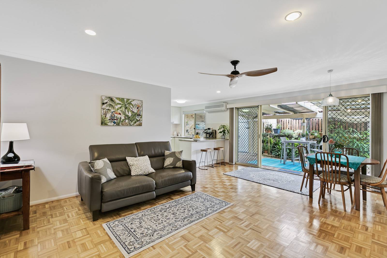 This delightful home has spacious open plan living and dining areas opening onto a private north facing covered alfresco entertaining courtyard, with tropical low - maintenance gardens and garden shed. Ideal for relaxing with friends and family in a private setting.