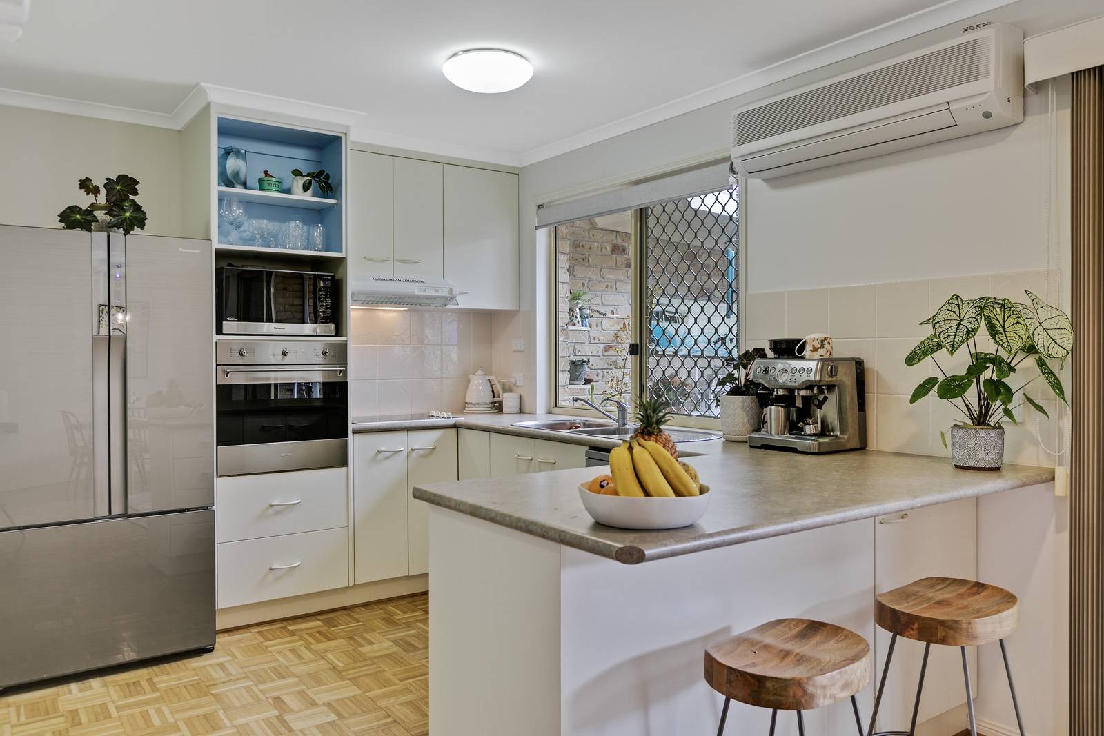 The home comprises three spacious bedrooms , the master with built in robes, en-suite and air-conditioning has access to the private courtyard. The two remaining bedrooms have plantation shutters and are light and airy.