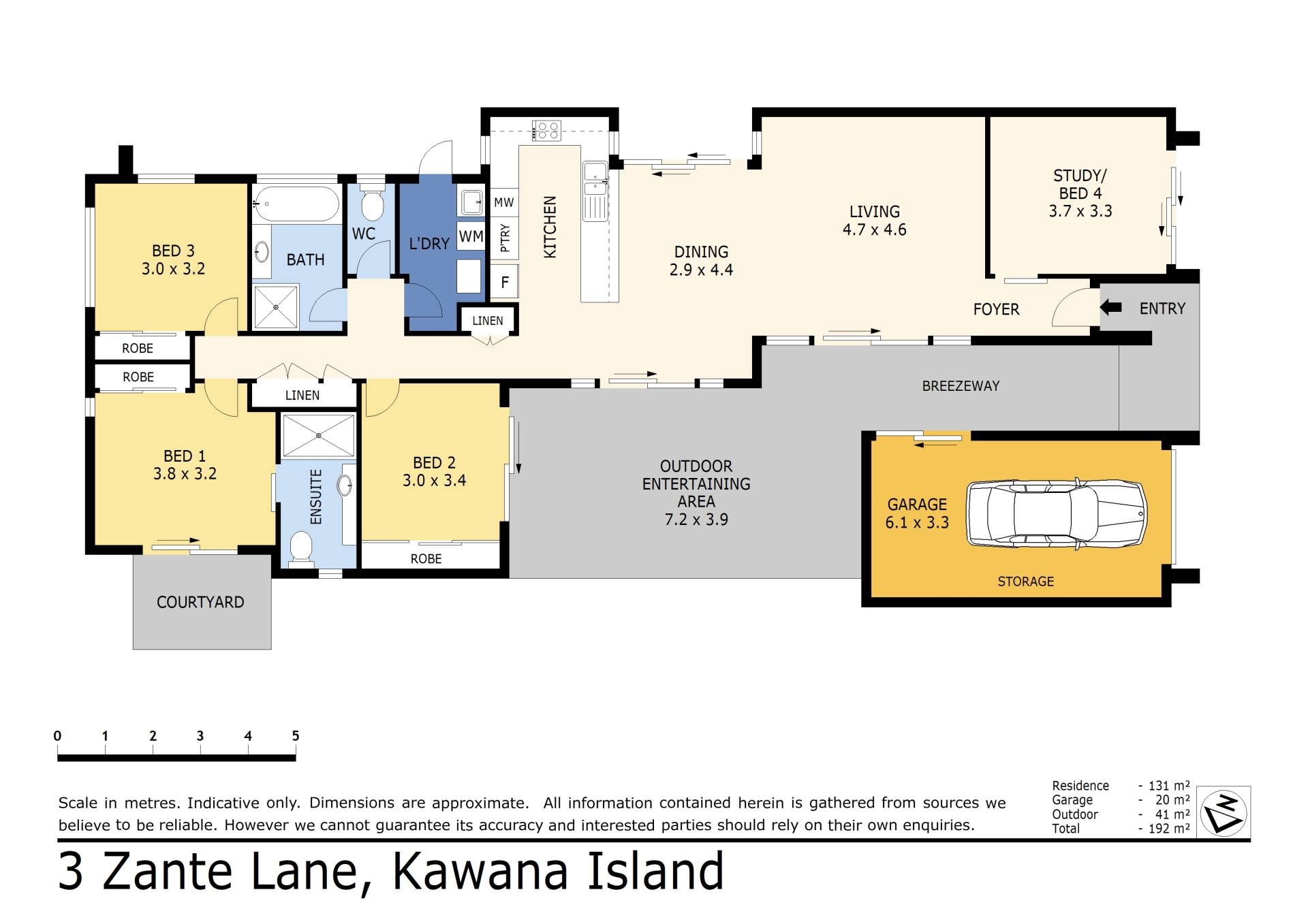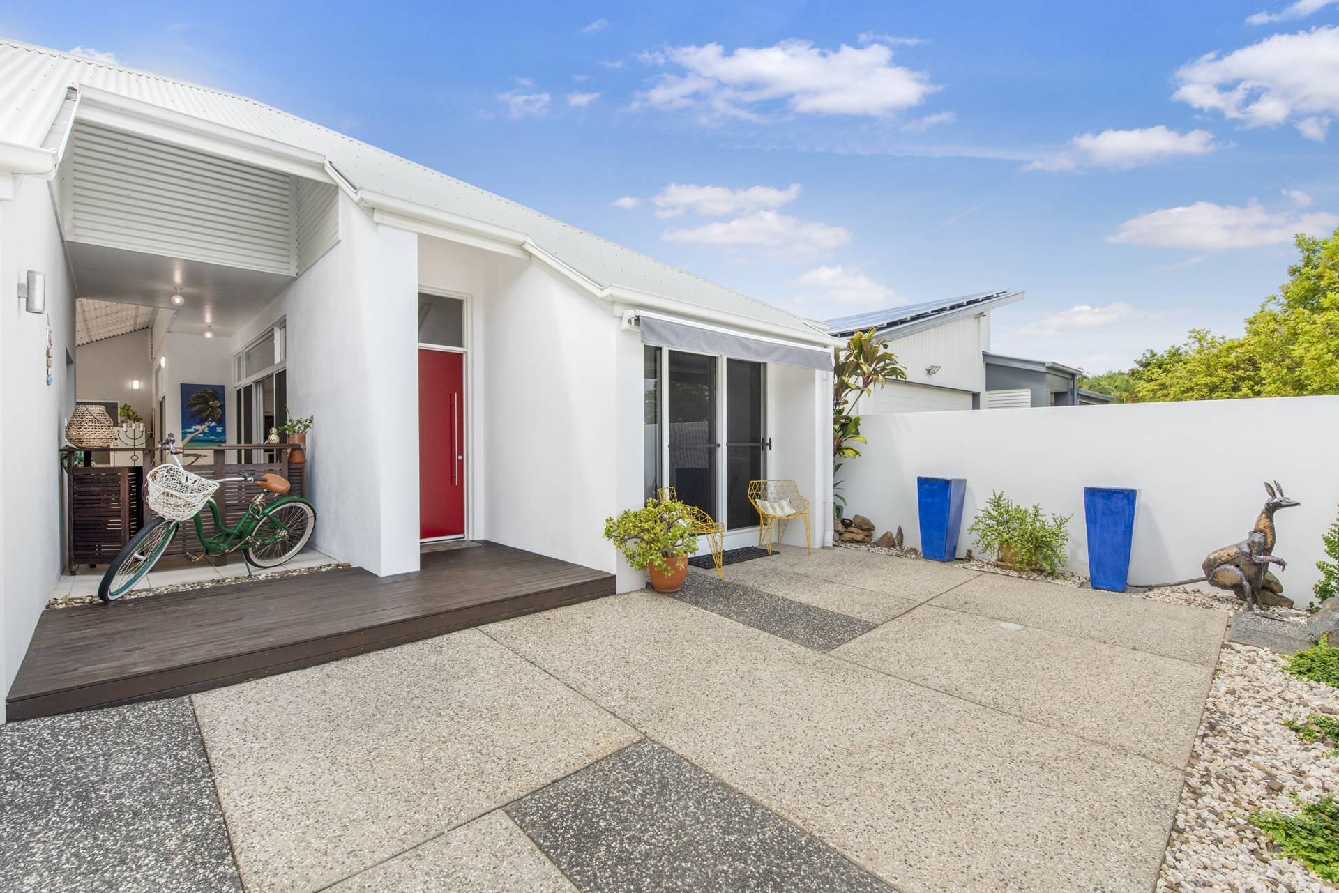 The living area has air conditioning and new curtains, new fans and carpets have been installed in all bedrooms and a split system AC is in main bedroom which also has its own private courtyard out through the glass doors.  The Open Plan Kitchen offers ample space plus there's 2 additional storage cupboards in the hallway.  There's also a roll out shade cover outside the 4th bedroom which is currently set up as an office and positioned at the front of the home which helps to keep it cooler during the warmer months and a very handy outdoor shower with a surf board as a backdrop is also installed down the northern side of the home.  The breezeway beside the red front door has been opened up and makes it lighter and brighter, I am sure you will be impressed as you first enter this lovely home as it offers so much more than you expect with its high pitched roof and high vaulted ceilings creating that extra space which in turn gives you that additional airflow that we all love and enjoy!
