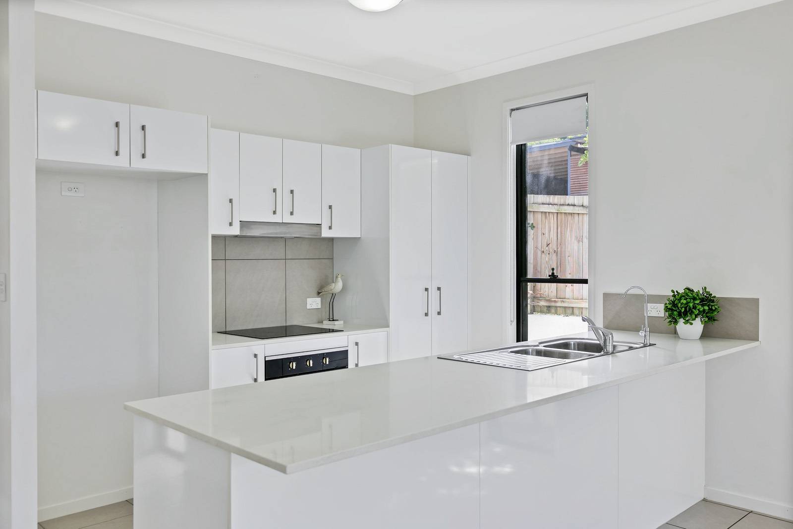 This light filled home of generous size and quality is modern in design. The home offers on the lower level, a reverse cycle airconditioned spacious open plan living area with high ceilings, modern galley style kitchen, stone bench-tops' breakfast bar, dishwasher, and quality appliances.