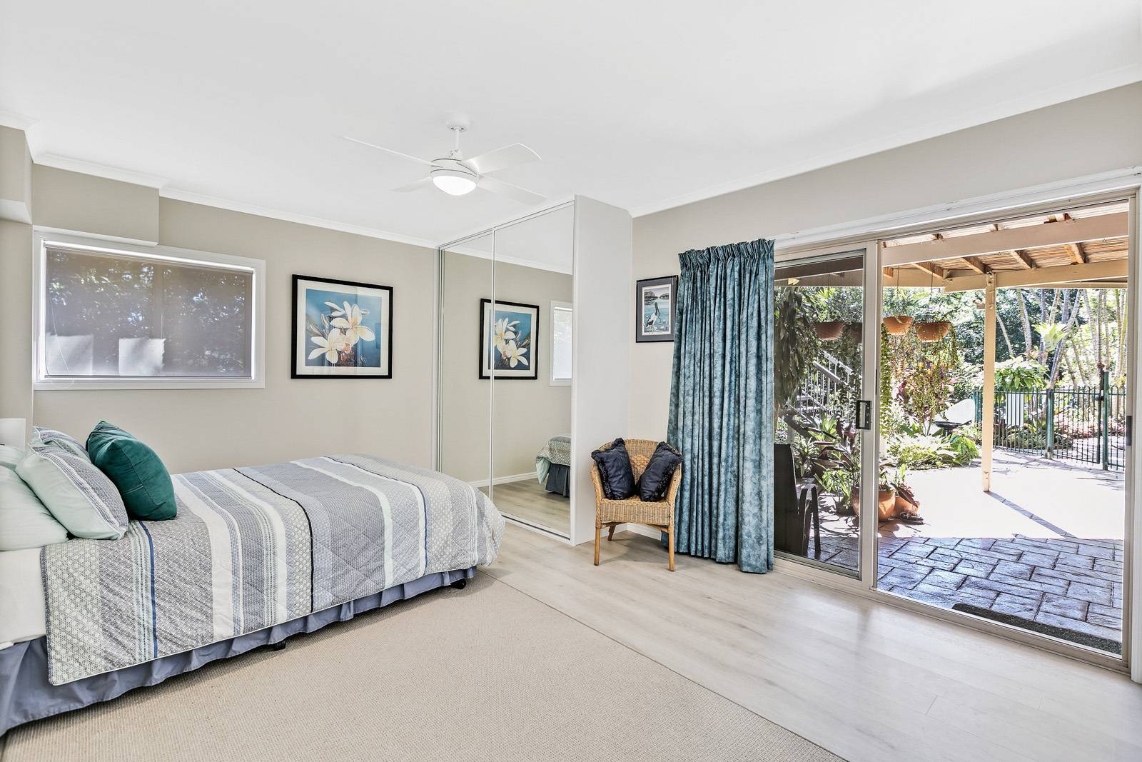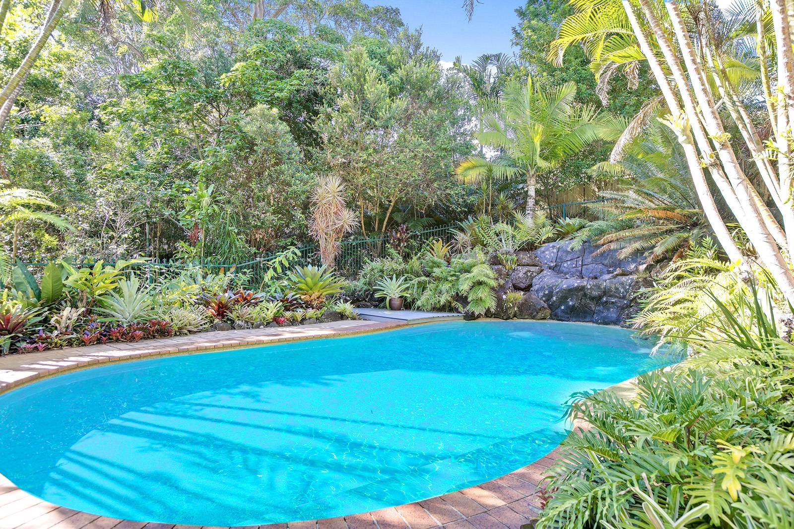 * Wide covered north facing entertaining deck over- looking a private inground pool with lush tropical gardens.