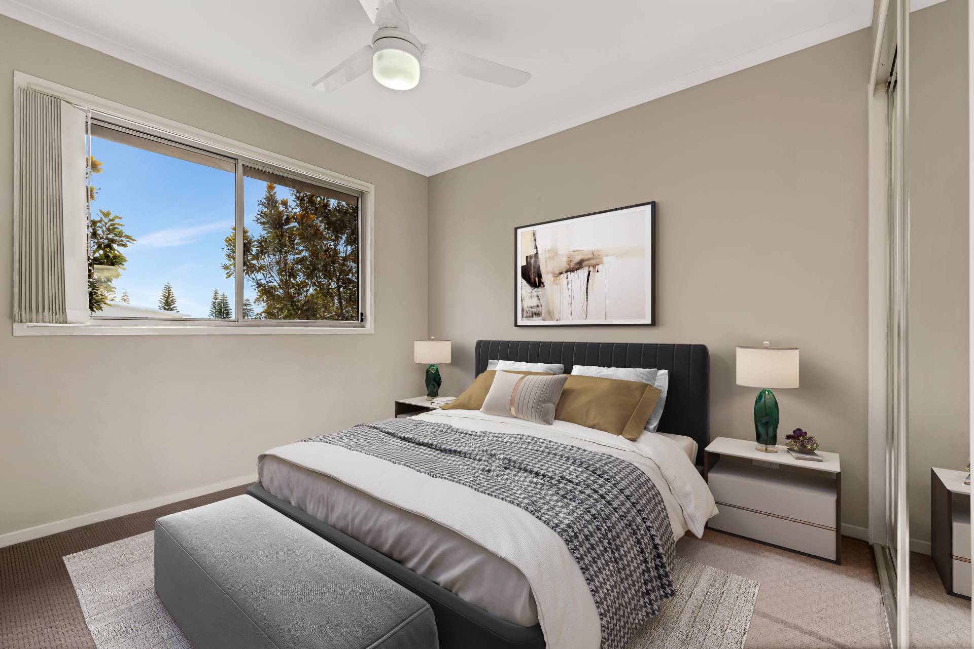 As you venture upstairs there are 2 more good sized bedrooms with built ins and the bathroom separates these making it such a great design giving more separation for the family. There is also a study nook below window directly opposite bathroom entrance for desk and cabinet to be positioned. This well appointed town house has such an excellent layout and super convenient having master bedroom on ground floor and Aldi plus lots more just a short 2 minute stroll away so come along and take a look for yourself and see how comfortable you could be living in this peaceful complex that is so central and convenient to everything!