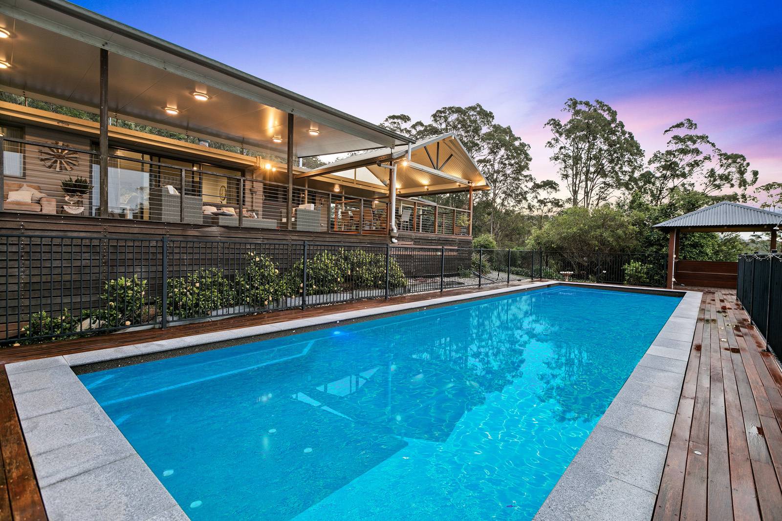 Designed for easy care living and entertaining this superb home provides open plan living,  expansive original timber floors, leading onto extensive wide covered entertaining decks overlooking a spectacular 15m x 4m heated saltwater pool, gazebo, and landscaped gardens.