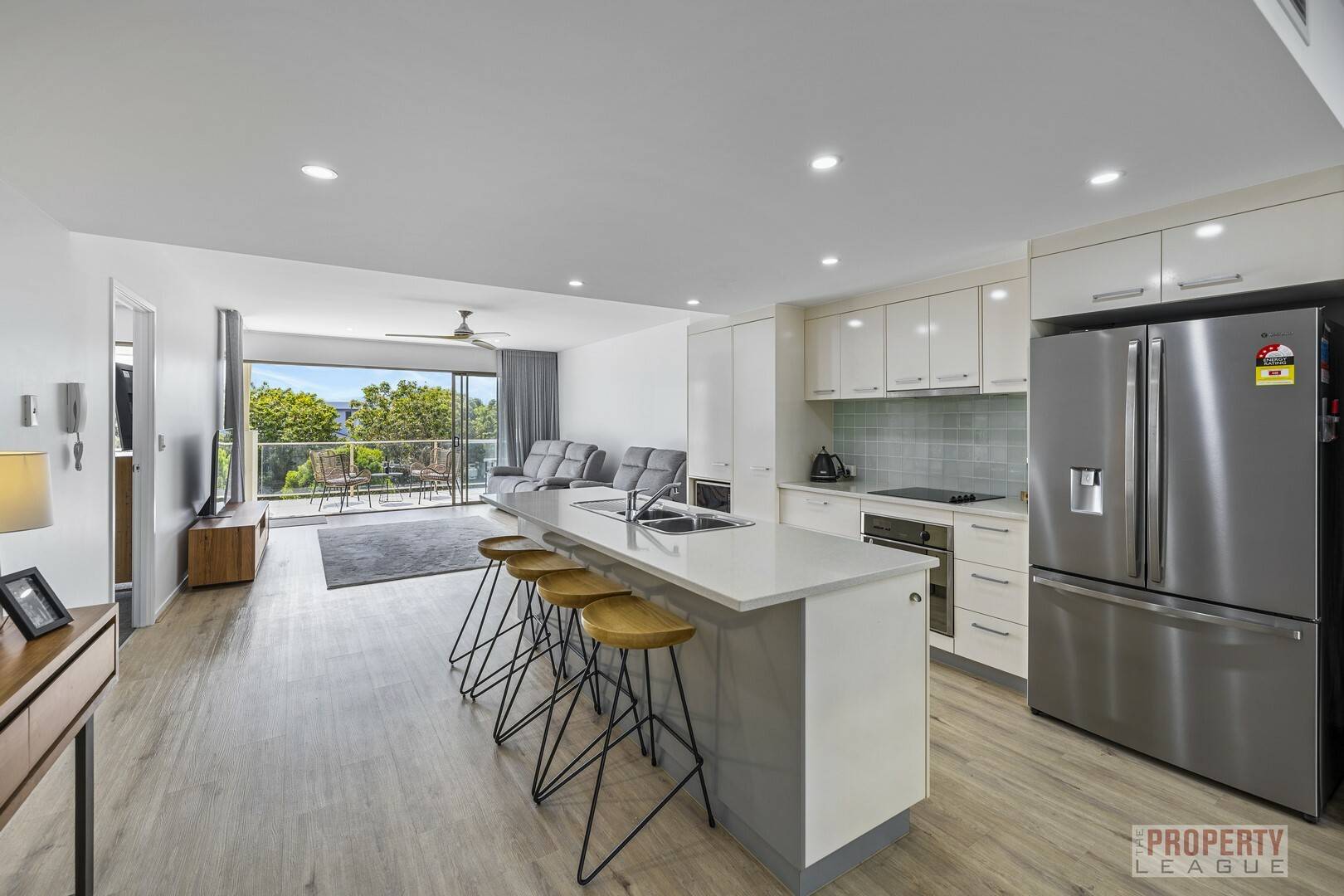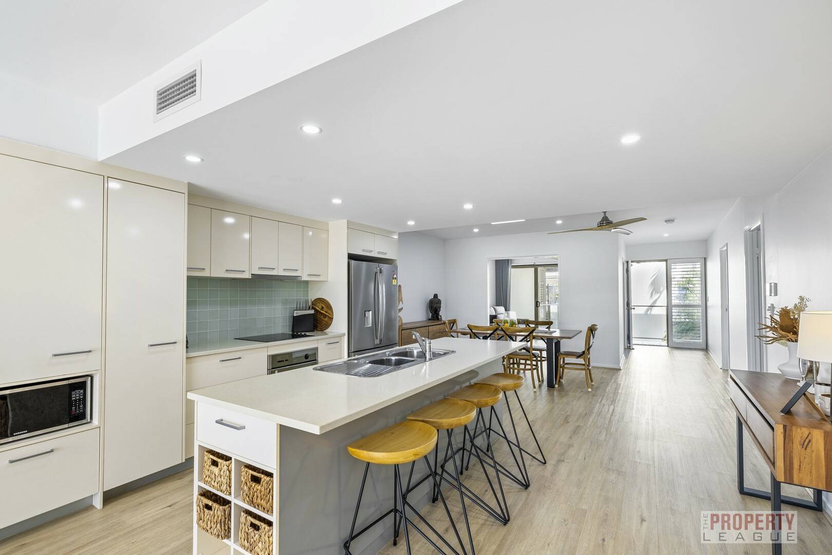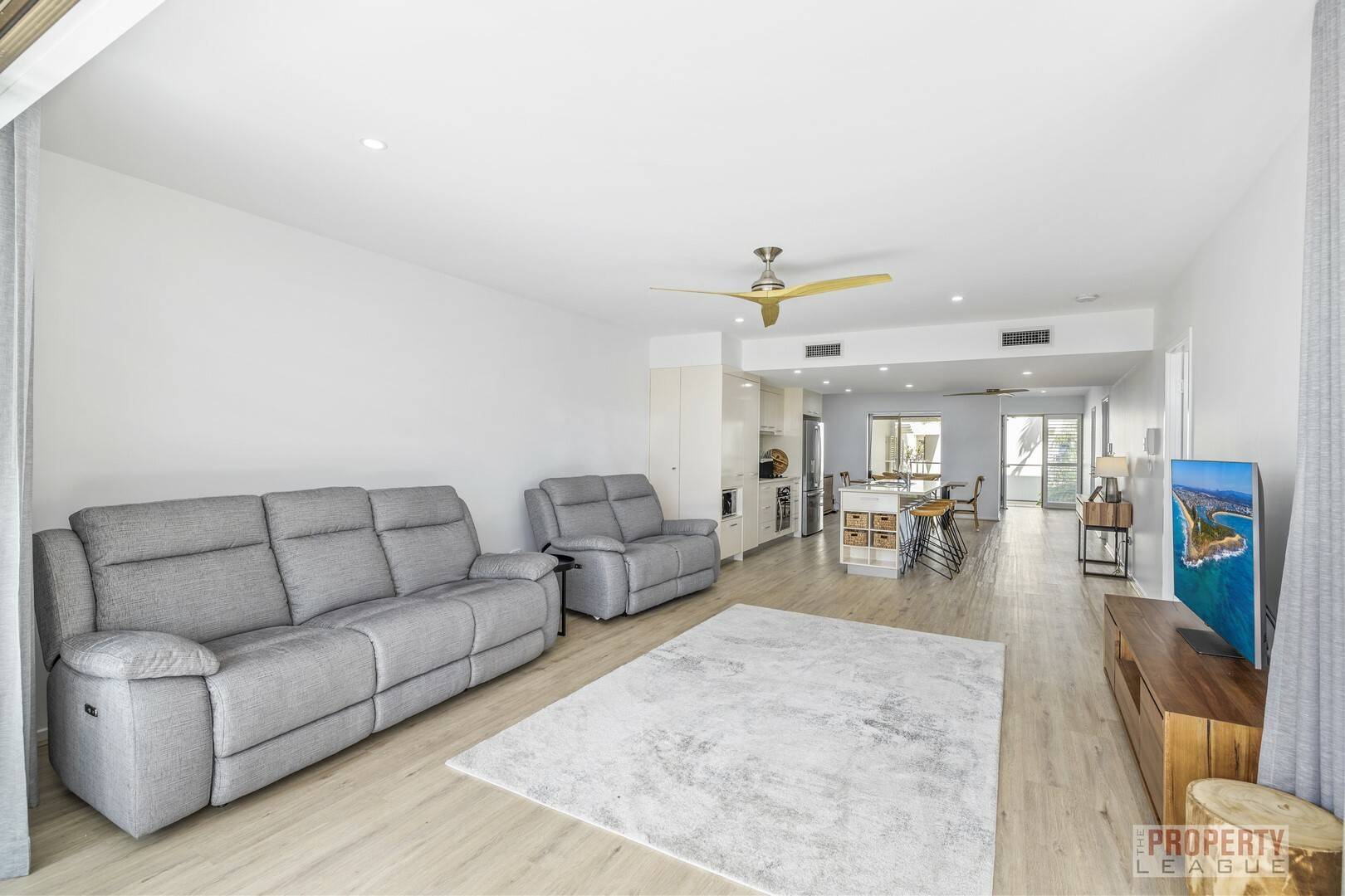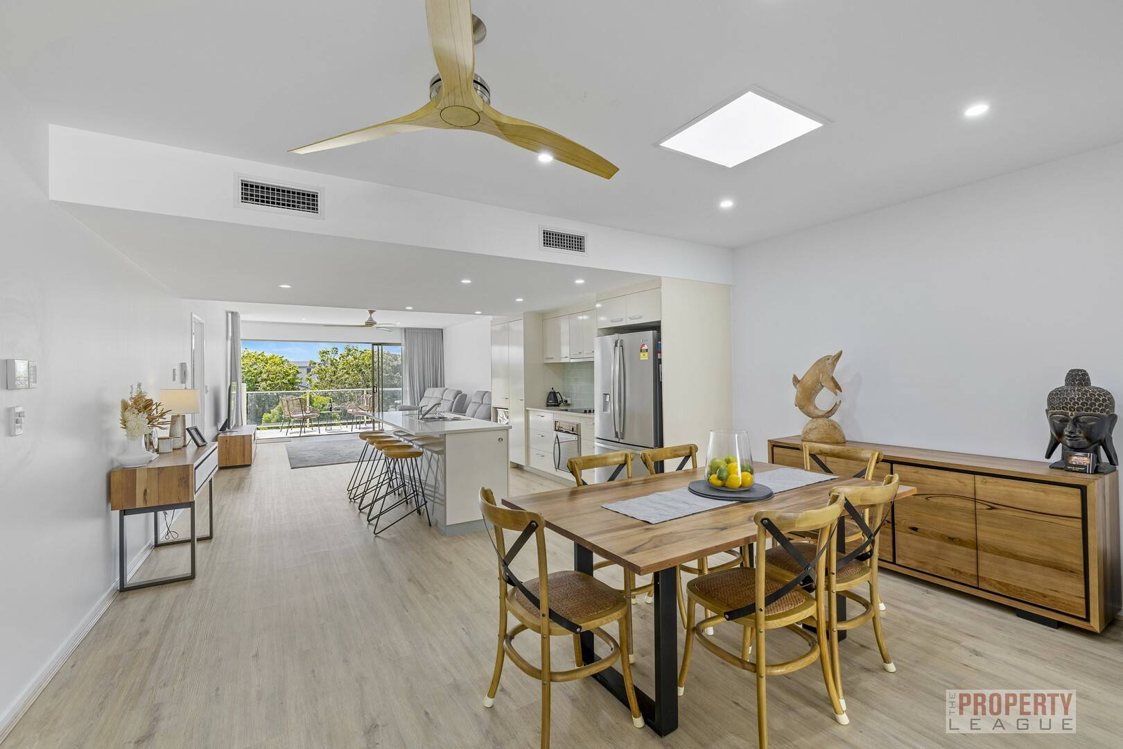 New ducted airconditioning  with additional outlet in ensuite has been added and 2 skylights  positioned in dining and ensuite making it light and bright with no lights needed during the day.  The 3rd bedroom has been cleverly opened up on northern side and used as office and media room letting in more light and a way of taking in the lovely views on offer or can be closed when privacy is needed.  The large open plan with white stone island bench and fully functional kitchen with new oven will make you feel like you are on holidays everyday and it is  positioned in a resort style complex and an added bonus is there are no short term rentals or air bnbs allowed making it a much more enjoyable place to live unlike many apartment complexes on the Sunshine Coast that do not offer this.
