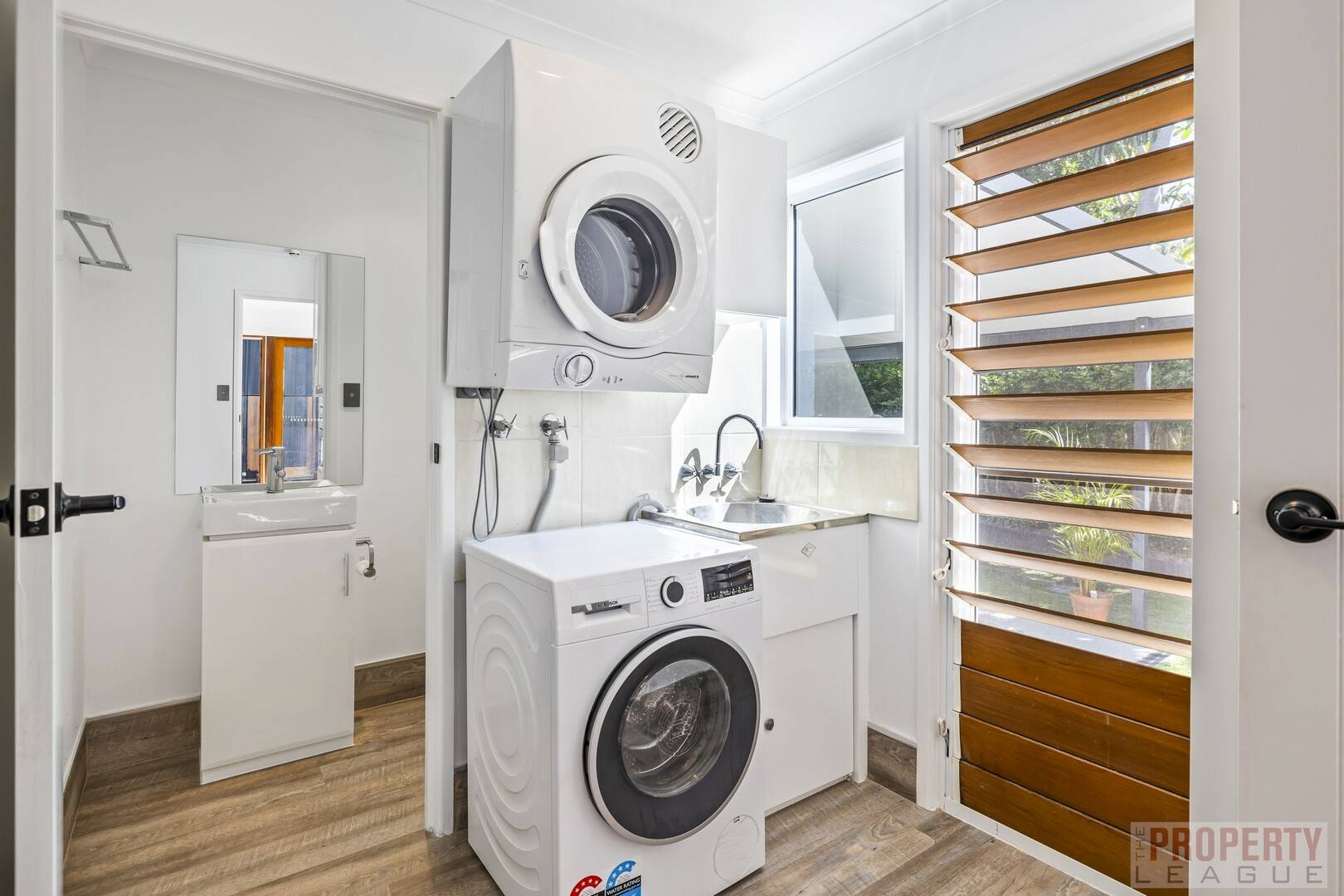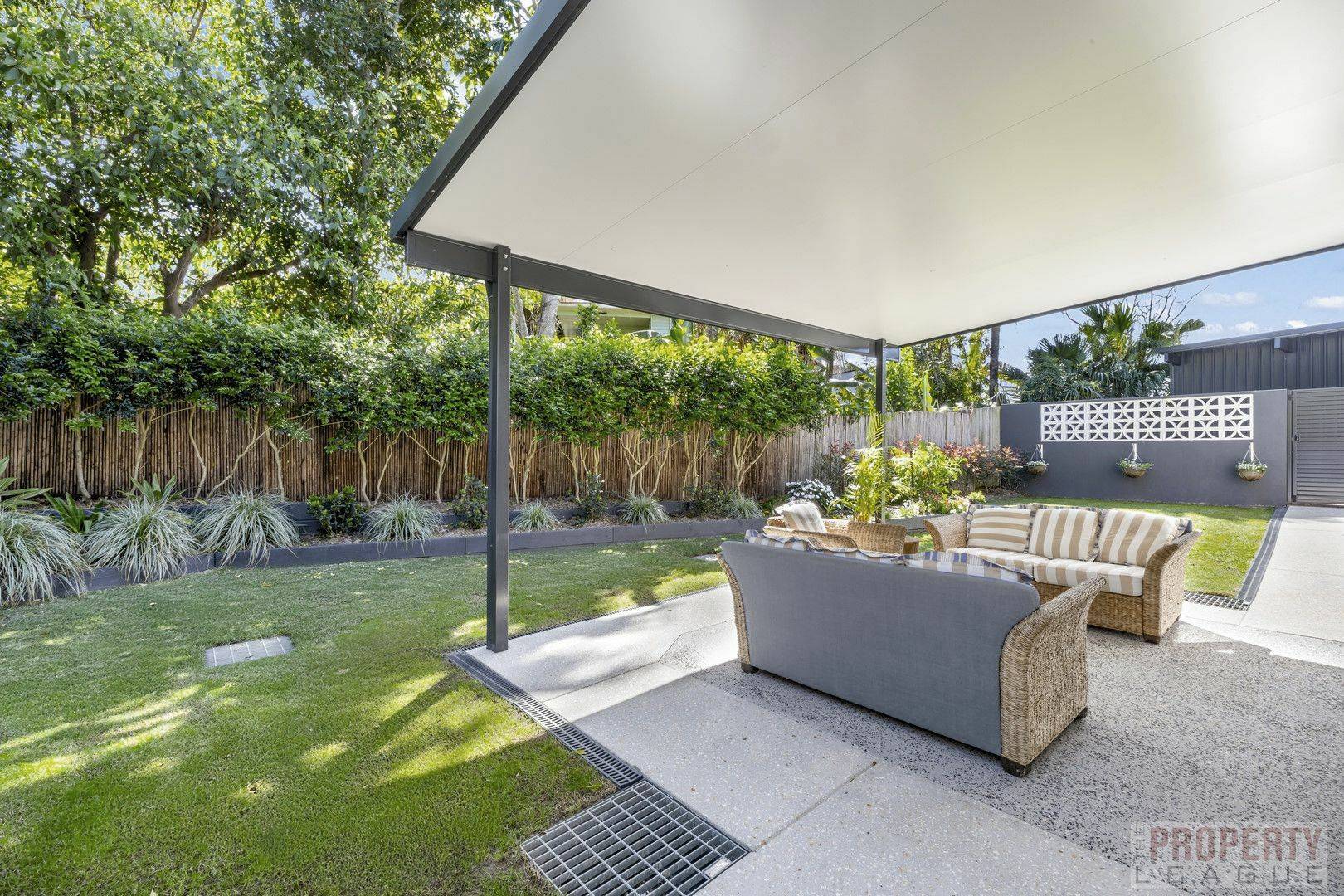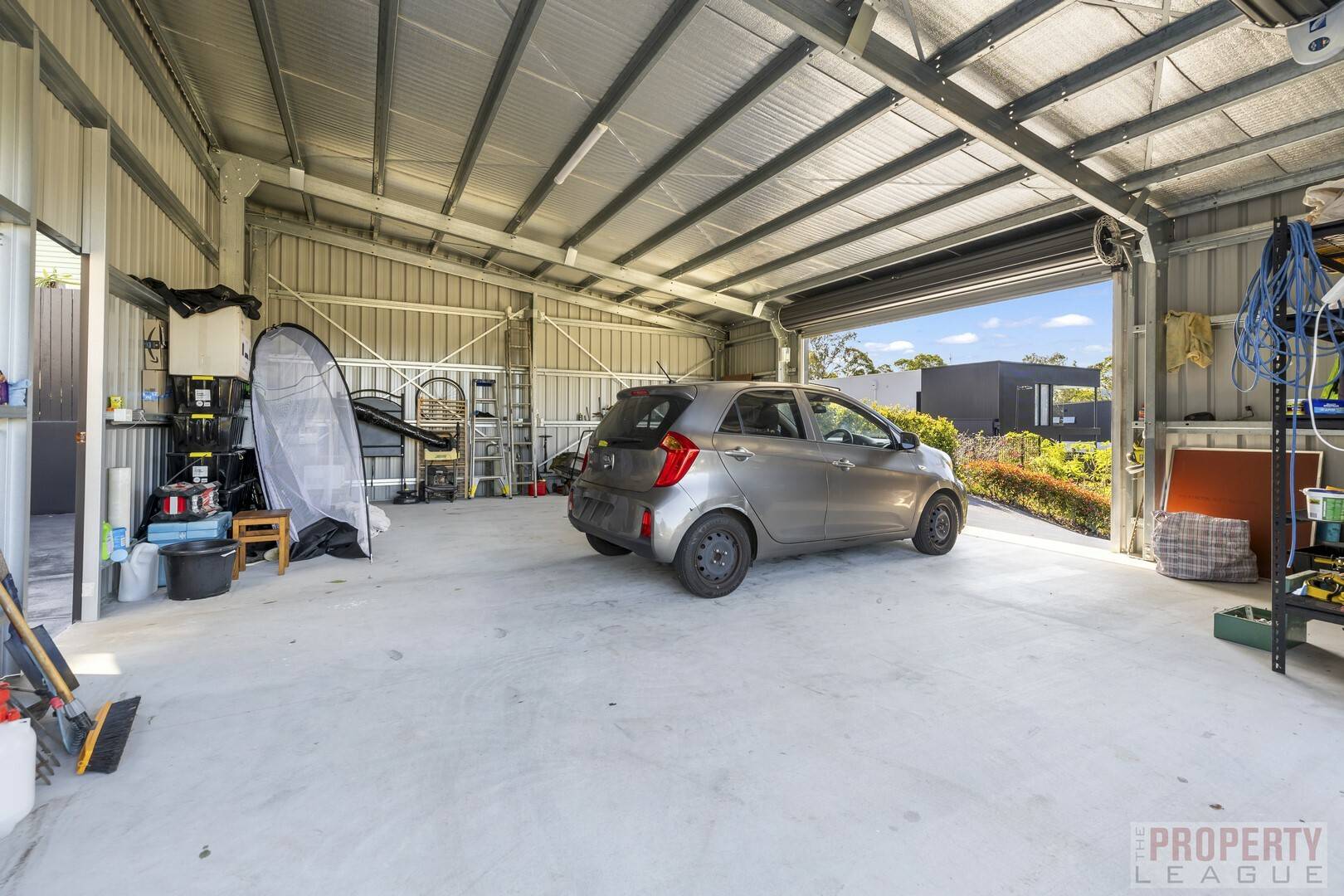 Let’s head outside and out the back is a lovely covered patio overlooking your level grassed backyard with tiered gardens.  The standout feature outside is the 7.5m x 9m shed with 2-sided access and 2 roller doors with room for your 4x4 plus 2 smaller cars or a second car and a trailer.  The main roller door is 3m high and the other is 2.6m high opening to a long side-access driveway giving optimal access and useability.  There's also adequate street parking for your caravan or truck if you didn't want to use the long side-access driveway. There's even 40amp power in the shed ready for electric vehicle or caravan charging, or even to use your welder.  The choice of covered outdoor entertaining on either side of the house to lap up or hide away from the sun depending on the season makes this home a year-round entertainers delight, including a gamut of air-conditioned indoor options when the tropical weather is turning on a show outside.
