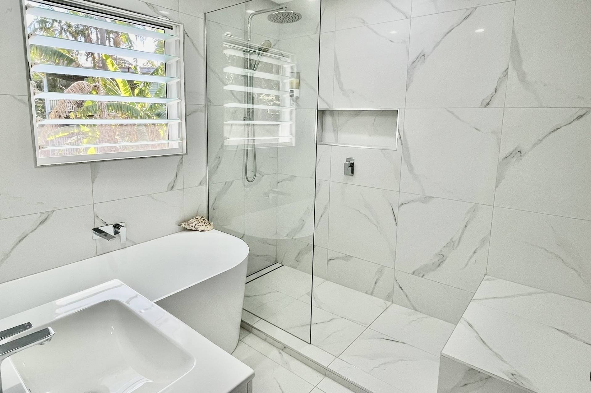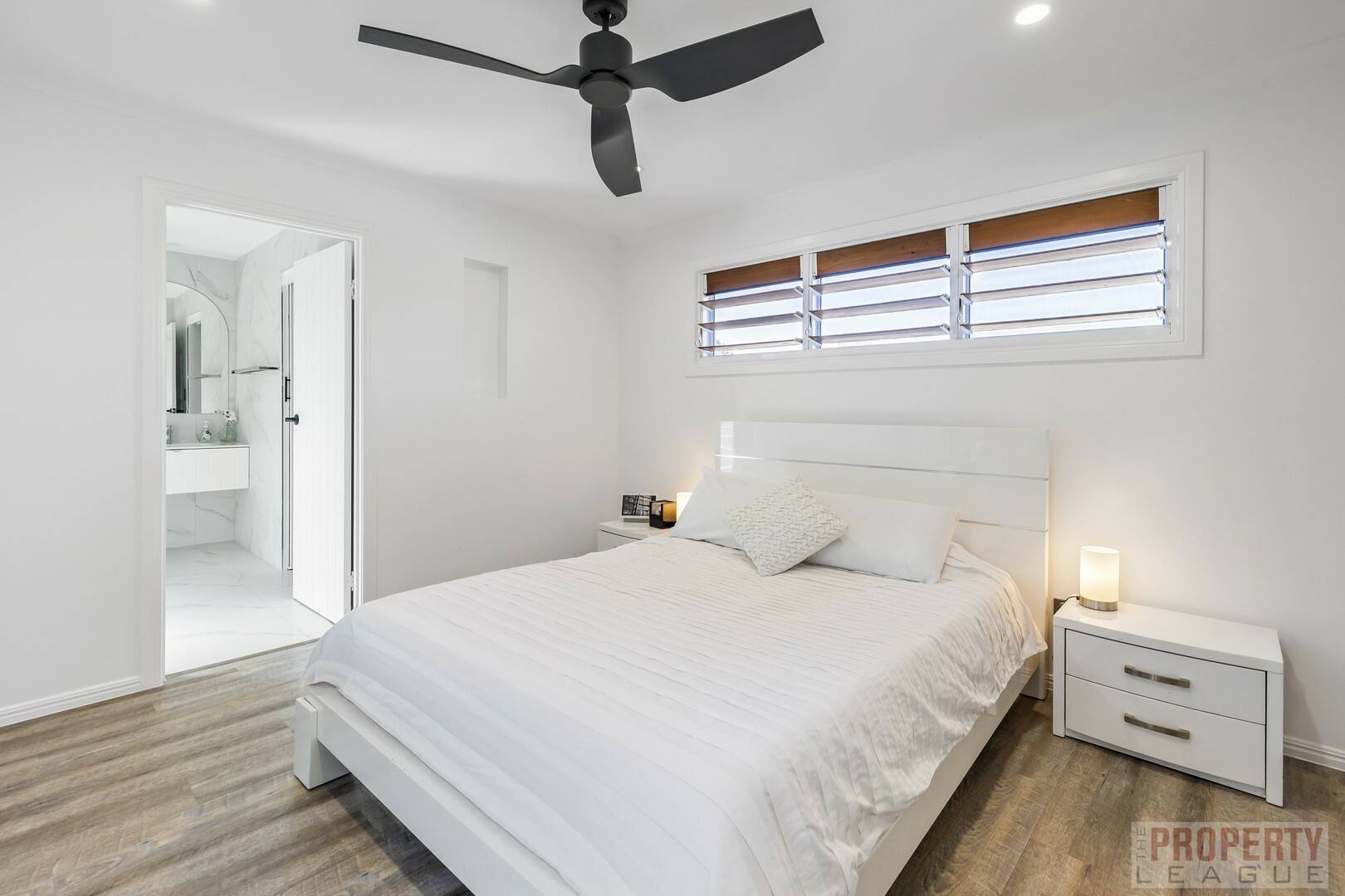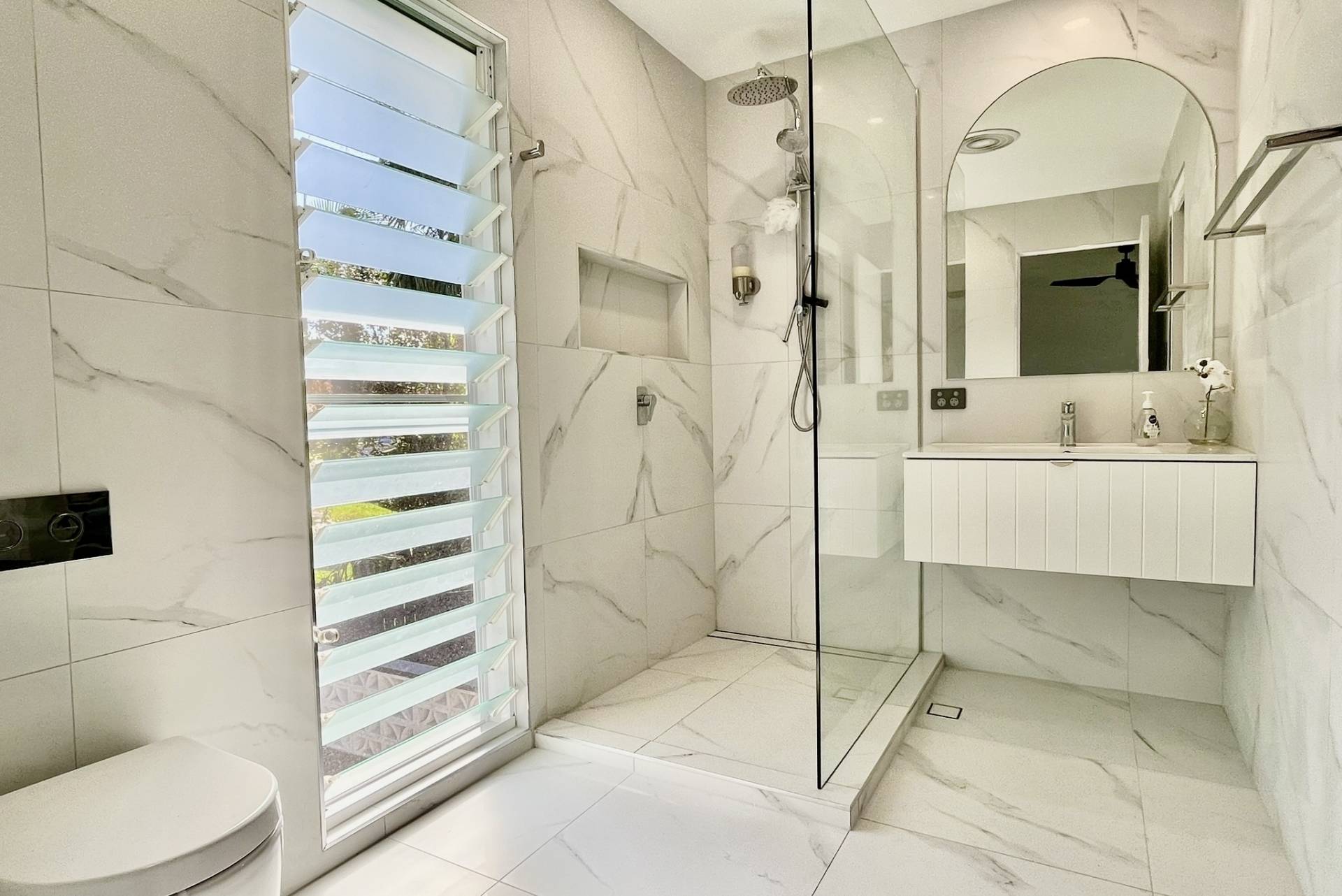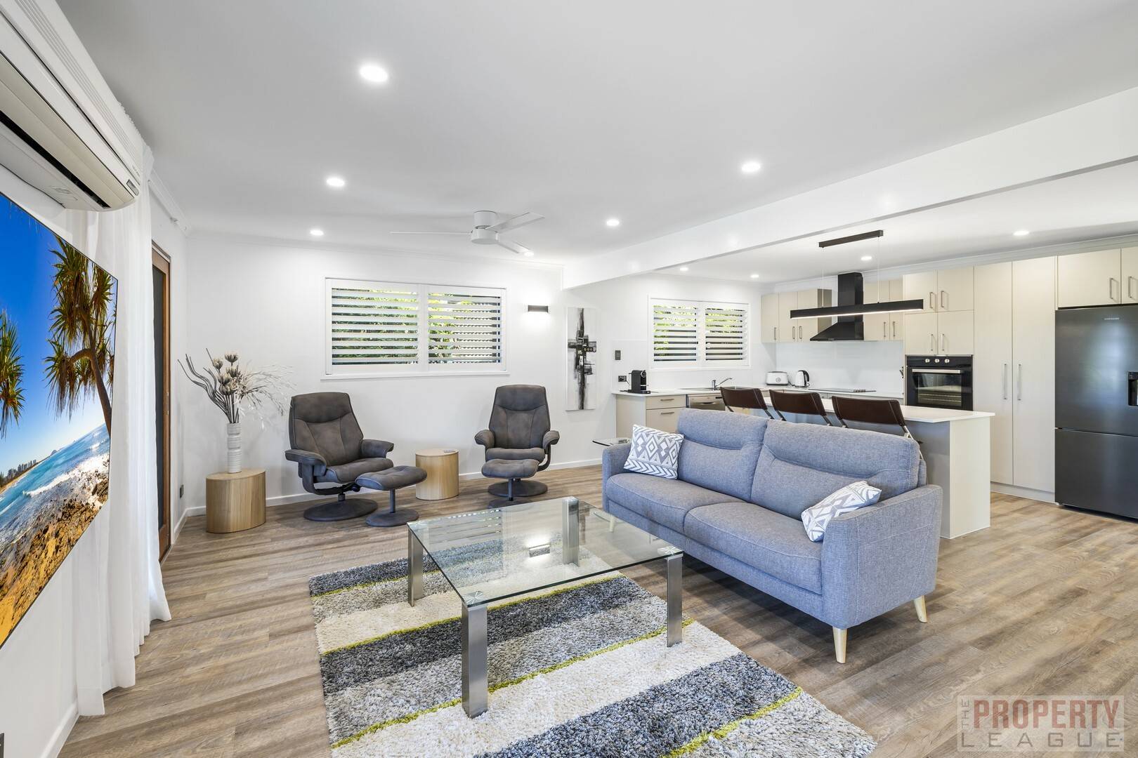 Let’s head outside and out the back is a lovely covered patio overlooking your level grassed backyard with tiered gardens.  The standout feature outside is the 7.5m x 9m shed with 2-sided access and 2 roller doors with room for your 4x4 plus 2 smaller cars or a second car and a trailer.  The main roller door is 3m high and the other is 2.6m high opening to a long side-access driveway giving optimal access and useability.  There's also adequate street parking for your caravan or truck if you didn't want to use the long side-access driveway. There's even 40amp power in the shed ready for electric vehicle or caravan charging, or even to use your welder.  The choice of covered outdoor entertaining on either side of the house to lap up or hide away from the sun depending on the season makes this home a year-round entertainers delight, including a gamut of air-conditioned indoor options when the tropical weather is turning on a show outside.