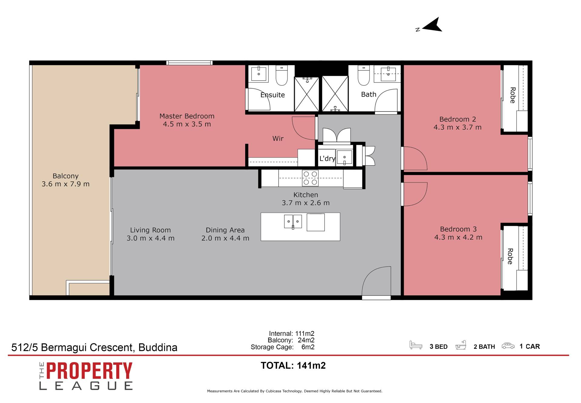 The perfect north facing aspect is the way to go because it is cool in summer and warm in winter with the sunshine drenching the wide 24 metre square balcony in winter but shaded in summer and with bedroom 2 and 3 having windows opening out to the outside it offers great cross ventilation throughout so airconditioning will not be needed most days!