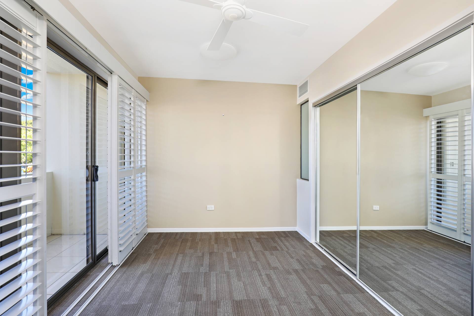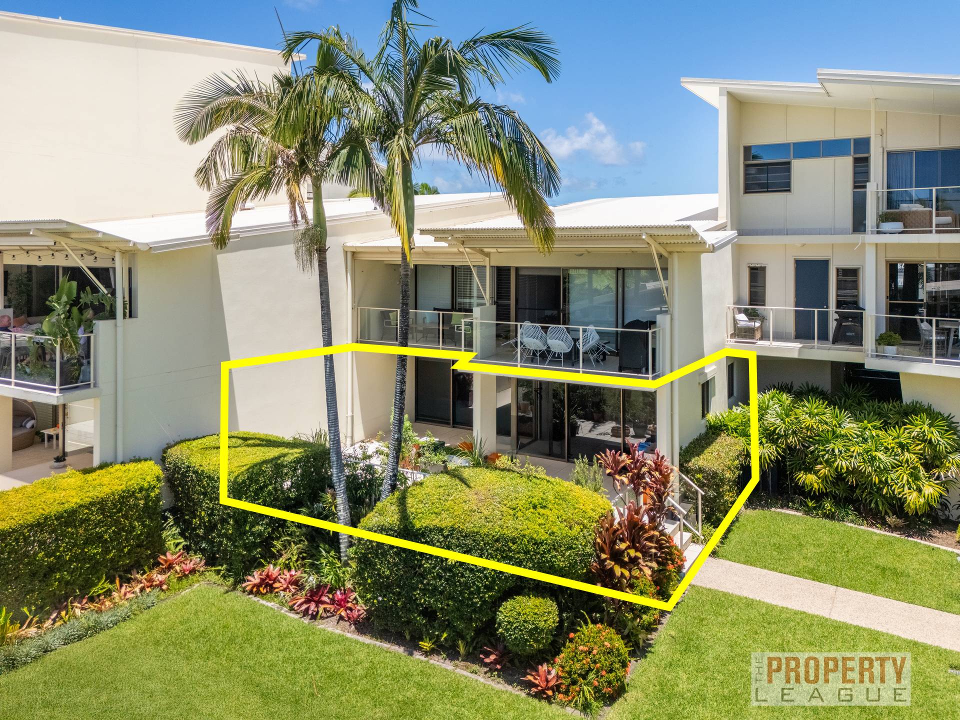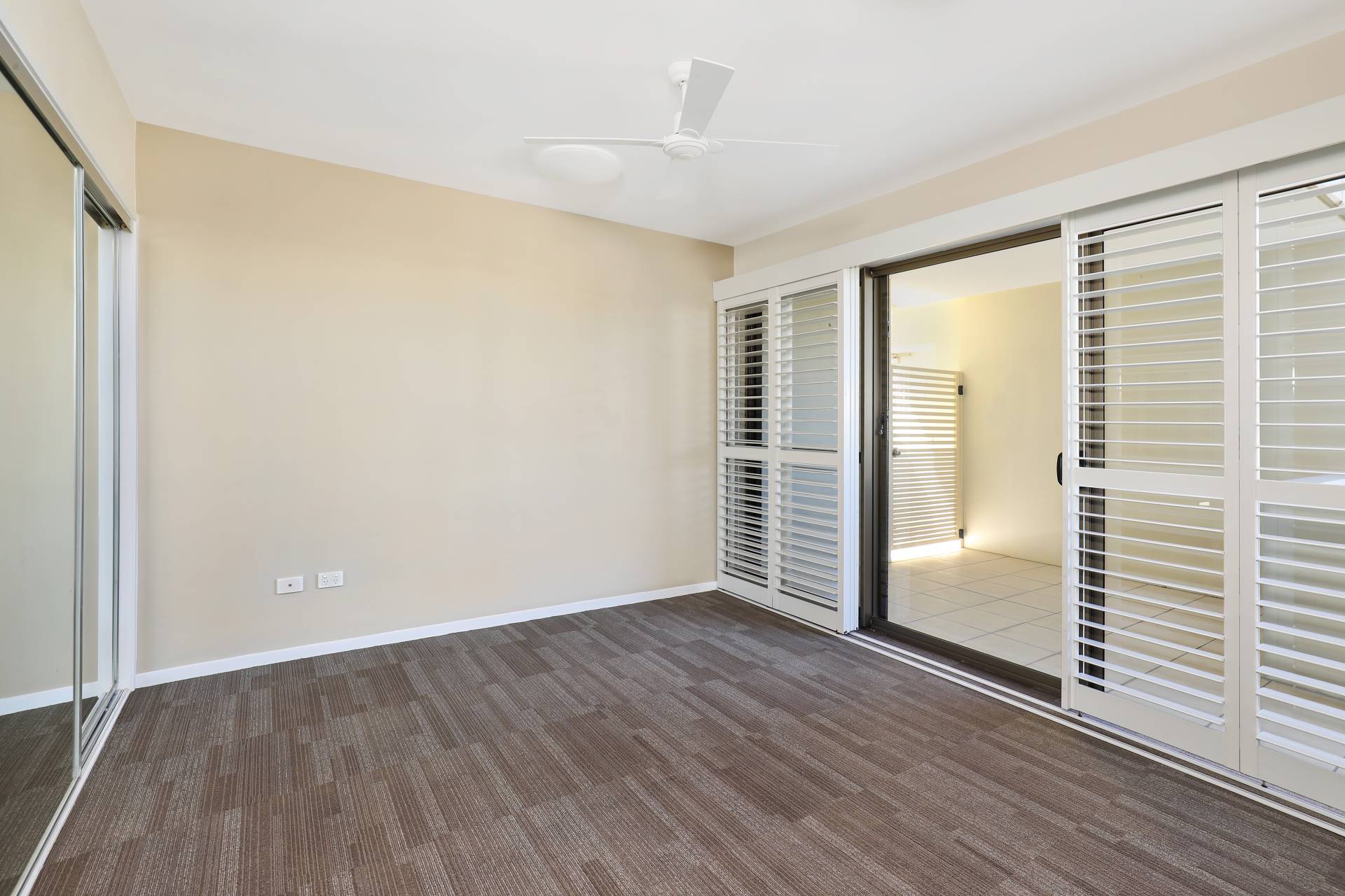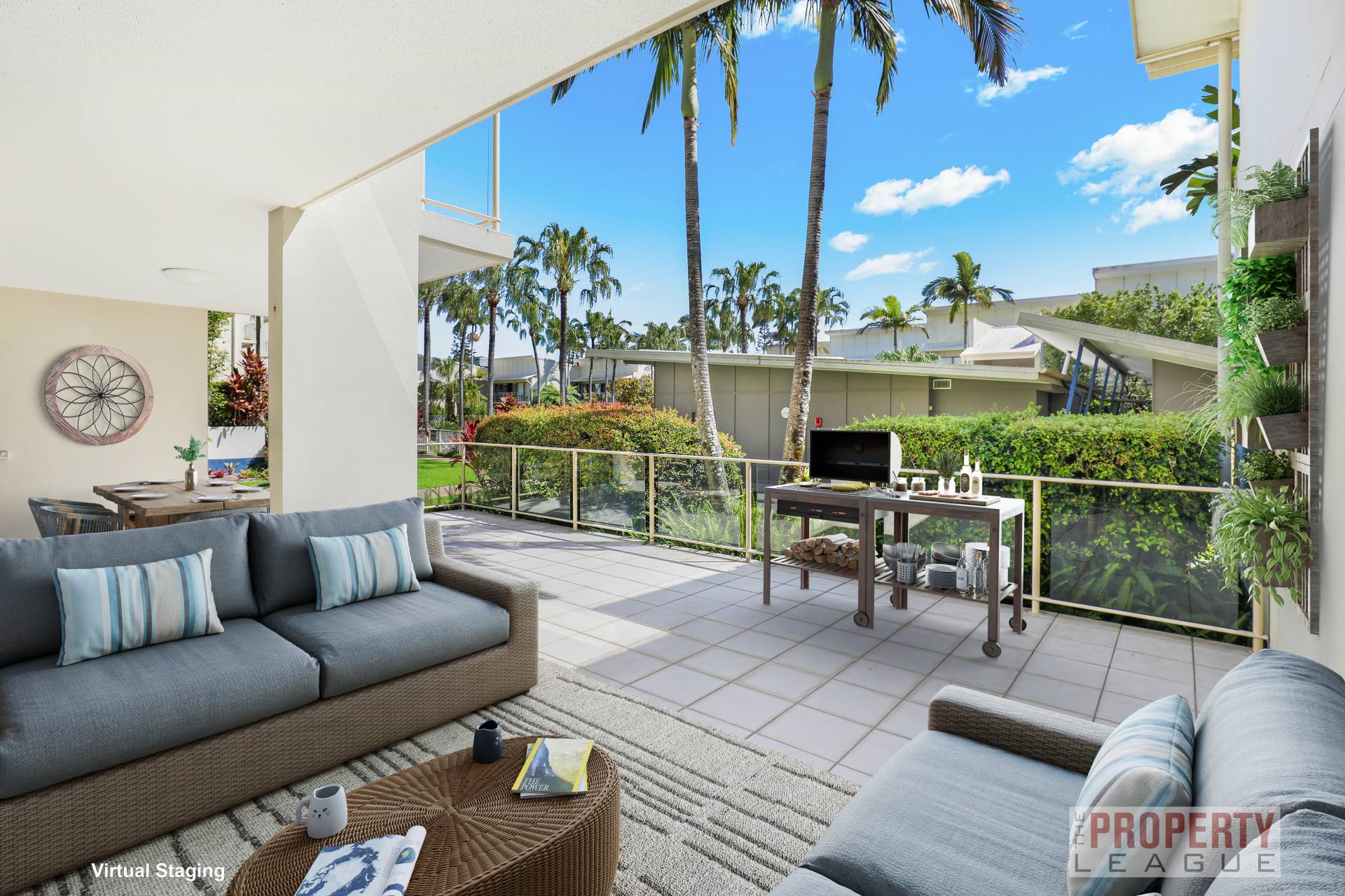 If you are looking for a very large spacious apartment with an extra large courtyard, offering easy access with 2 entrances north and south this is the perfect place for you!  Leeward Apartments Kawana Island offer large house sized apartments and this particular unit boasts a massive north facing terrace with only 4 steps down to the ground level.  From your terrace you can also enjoy amazing views across to the spa, lagoon and 2 lane lap pool all being framed with beautiful established palm trees in a tropical and resort style setting!