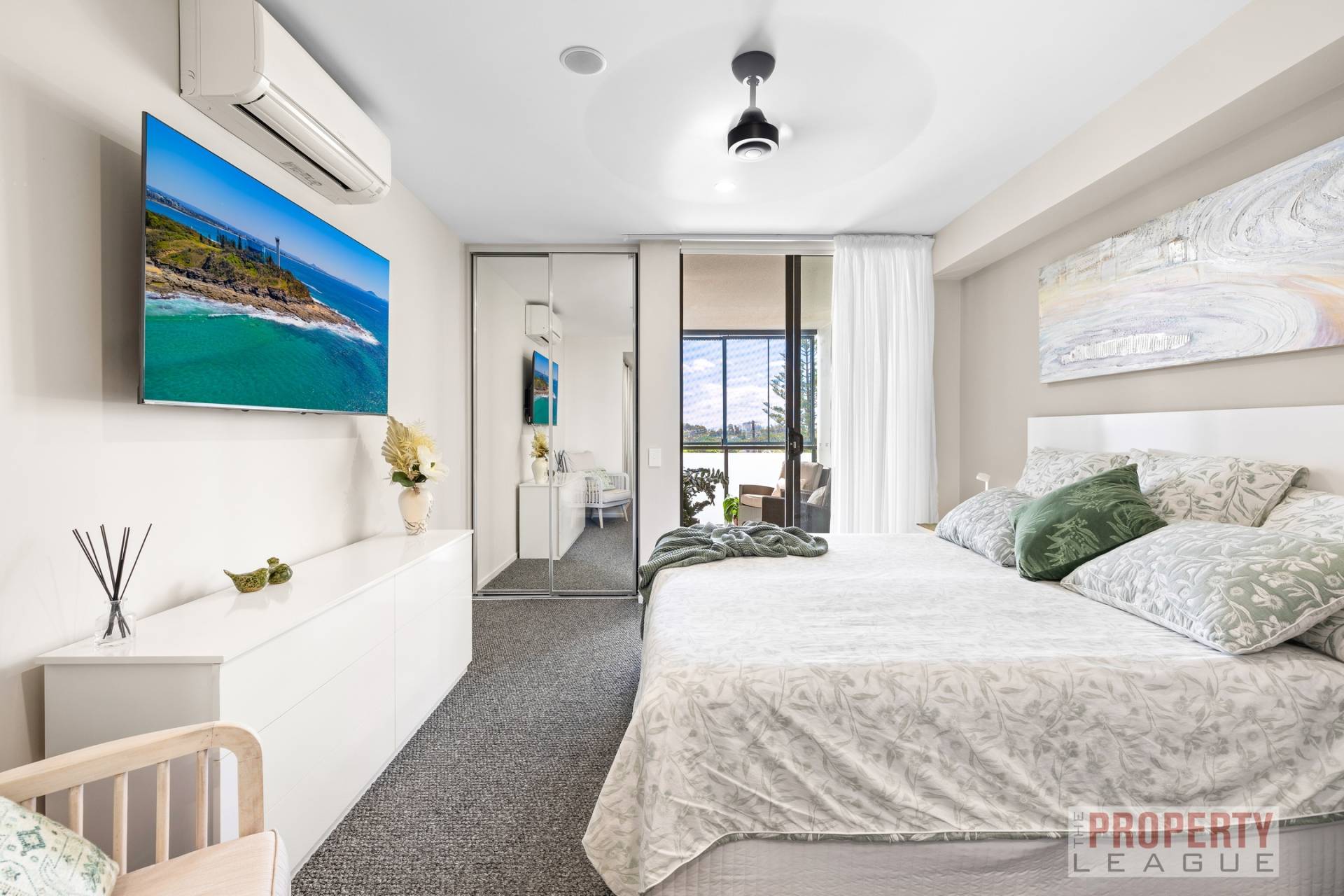 This northside beauty has full roll down block out blinds together with curtain sheers in both the living area and master bedroom. There's so many added extras; airconditioning and new carpets in all 3 bedrooms, extra storage throughout with desks built into each of the very large 2nd and 3rd bedrooms and another full wardrobe built in the main bedroom so lots of extra storage, handy if downsizing.  On the first level you'll find a sparkling magnesium pool, gymnasium and barbeque area where you can sit with friends relax, enjoy a meal and take in the great coastal vibe on offer from this amazing location.  Downstairs on the ground level you have 2 popular coffee shops; Hey Day and Sunday Coffee, Urban Lamb, Barber, Beauty Salon, Sauna, Steam Room, Ice Bath, Physio, Jeweller with so much more just over the road!