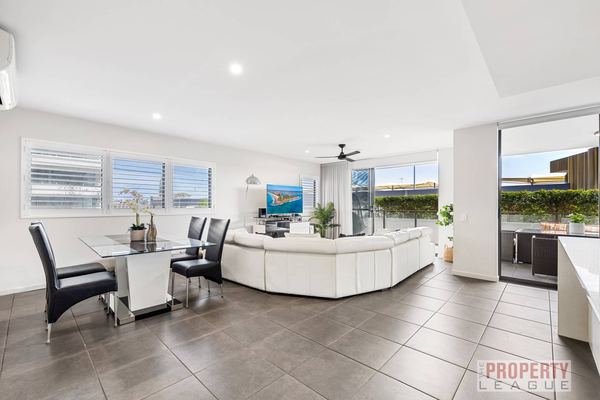 This first level large and stylish 2 bedroom corner apartment has one of the biggest living areas you'll find with a great layout and a lovely leafy green privacy hedge.  If you are looking for plenty of space this modern and convenient apartment also shares the same level as the pool, gym, BBQ area and library with extra entry from ground level on the beach side making it so very handy and convenient!  It has windows and stylish white shutters all down one side of apartment with curtains and remote control blinds on balcony side.  Downstairs in the secure gated basement you have 1 secure car park plus a lock up storage cage and its just a short stroll to the lifts where you have 2 elevators that will bring you direct to your front door, its all very secure with good lighting.
