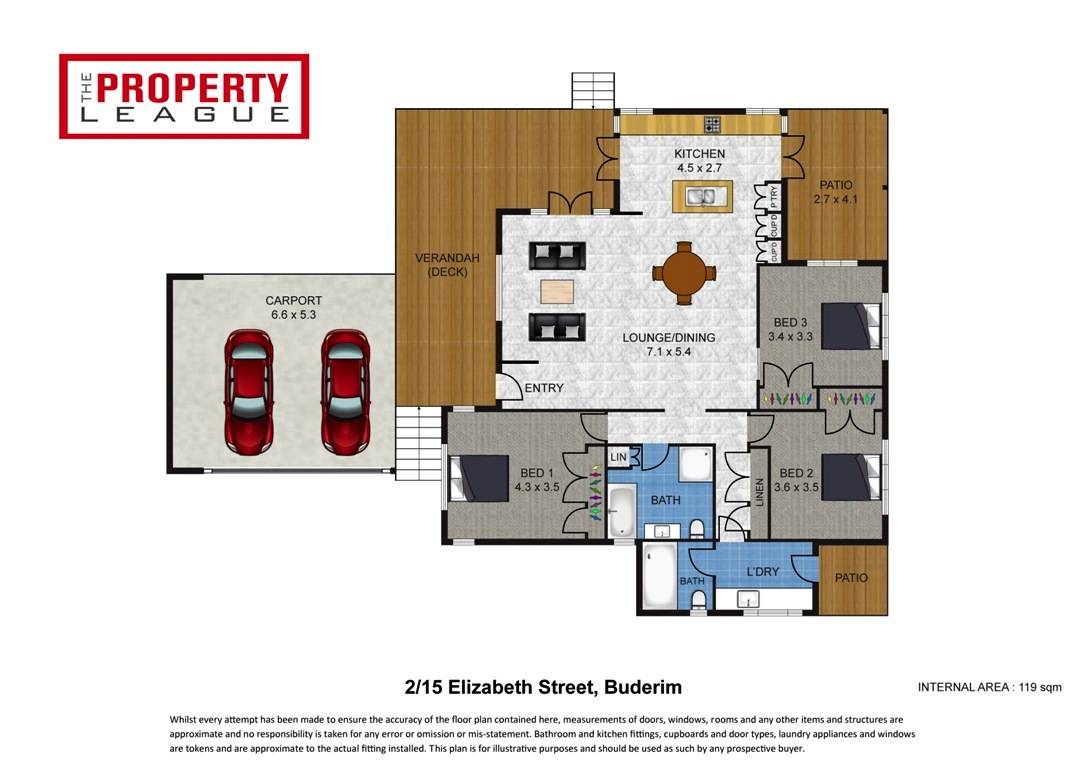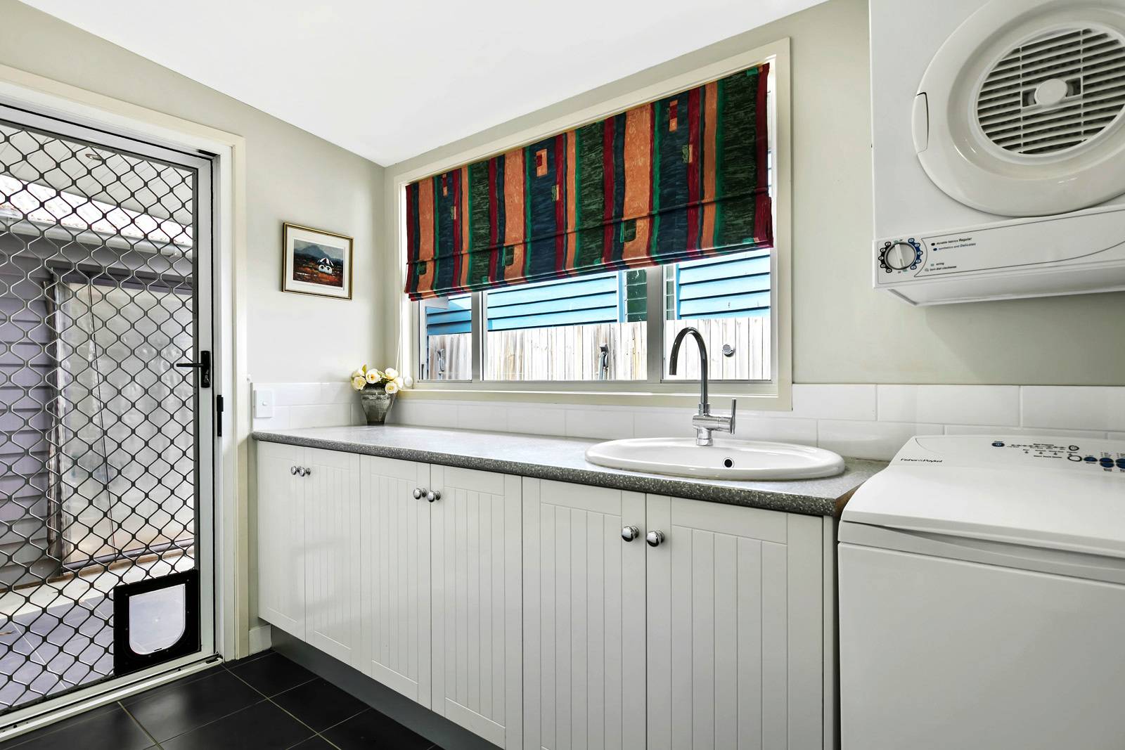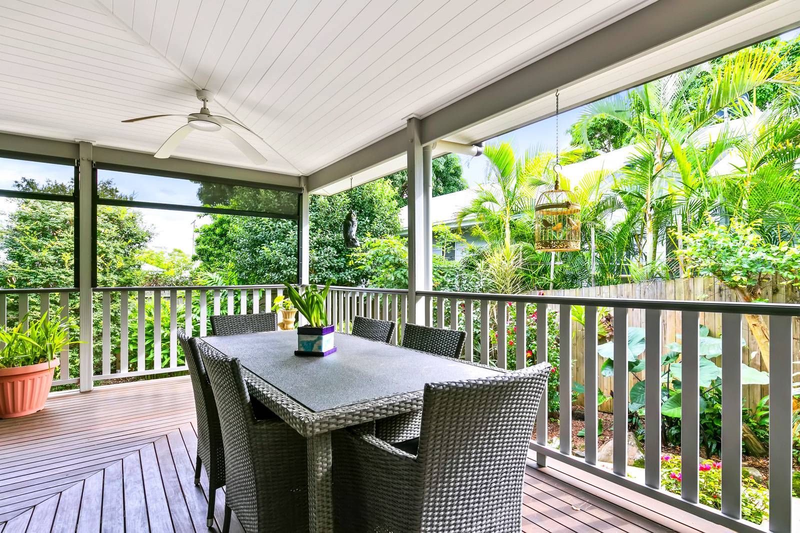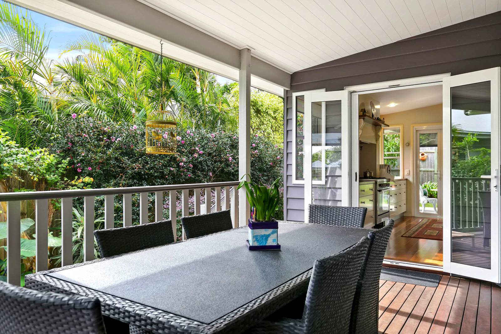 The living and dining area with timber floor, high ceilings and French doors is open plan and is adjacent to the kitchen with an island bench and excellent storage space.  The covered deck has room for alfresco dining.  A separate patio at the rear overlooks a private lawned garden.