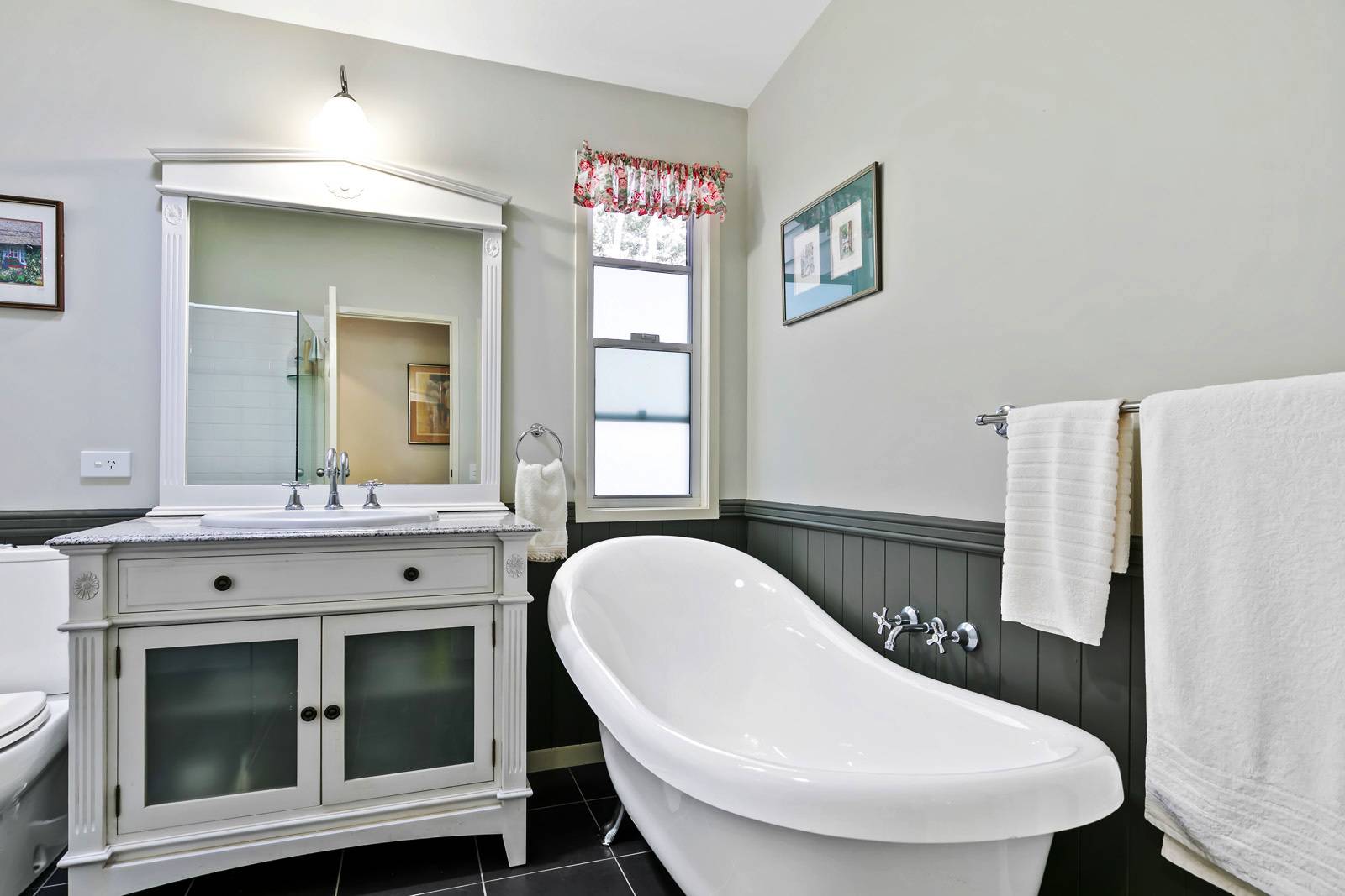 The main bathroom, in keeping with the quaint character of the home, has a claw foot bath and a shower.  There is a second bathroom close to the third bedroom.  All three bedroom are double and have built-in cupboards.