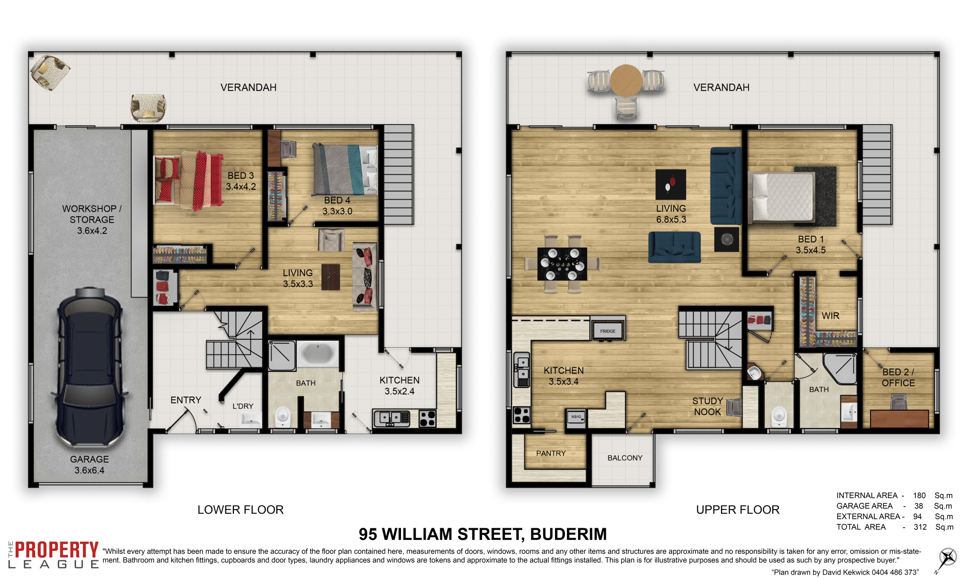 - Upstairs offers a lovely open plan design with stunning timber floors