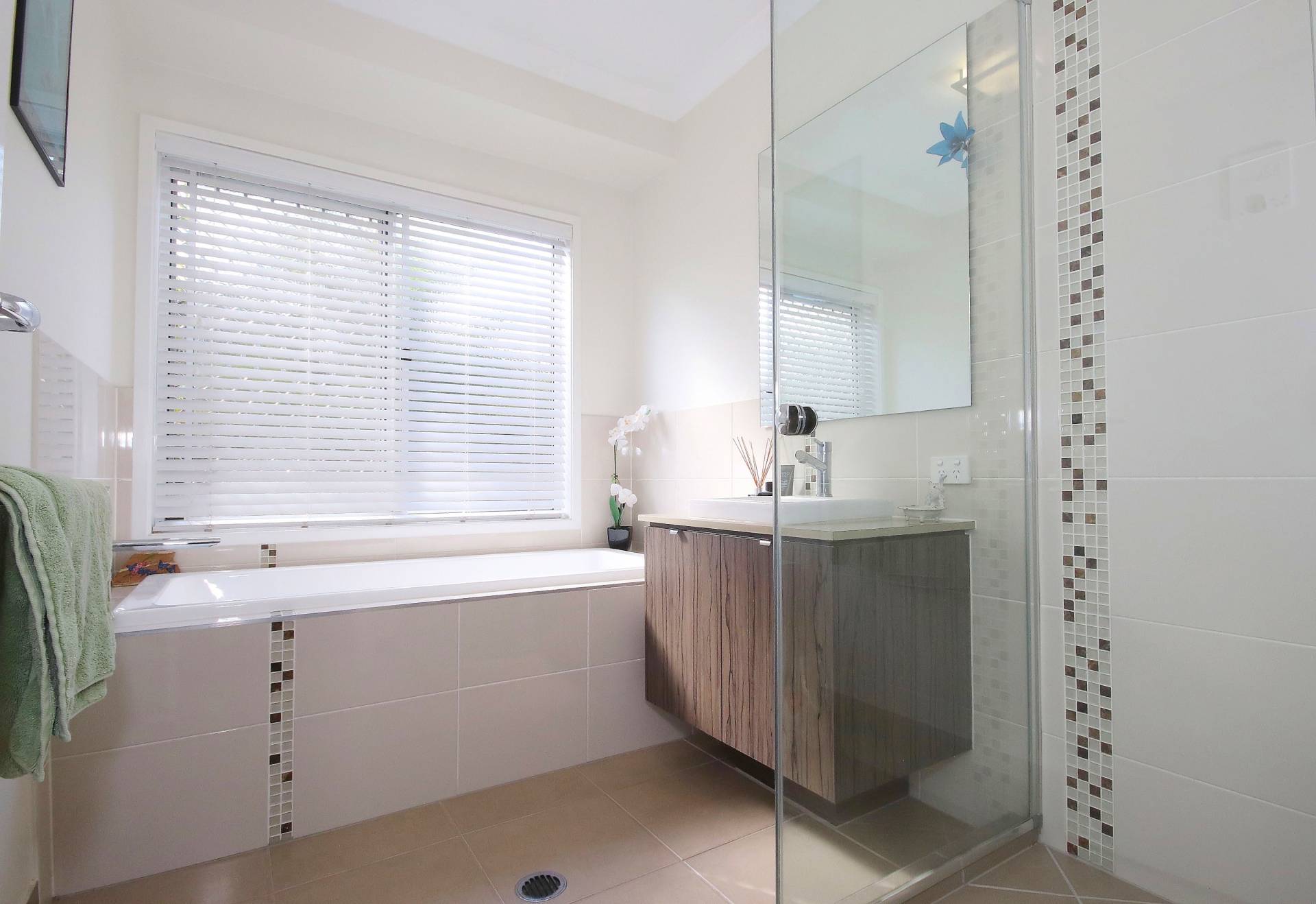 Generous sized modern family bathroom, formal lounge and open plan kitchen/dining/rumpus room.