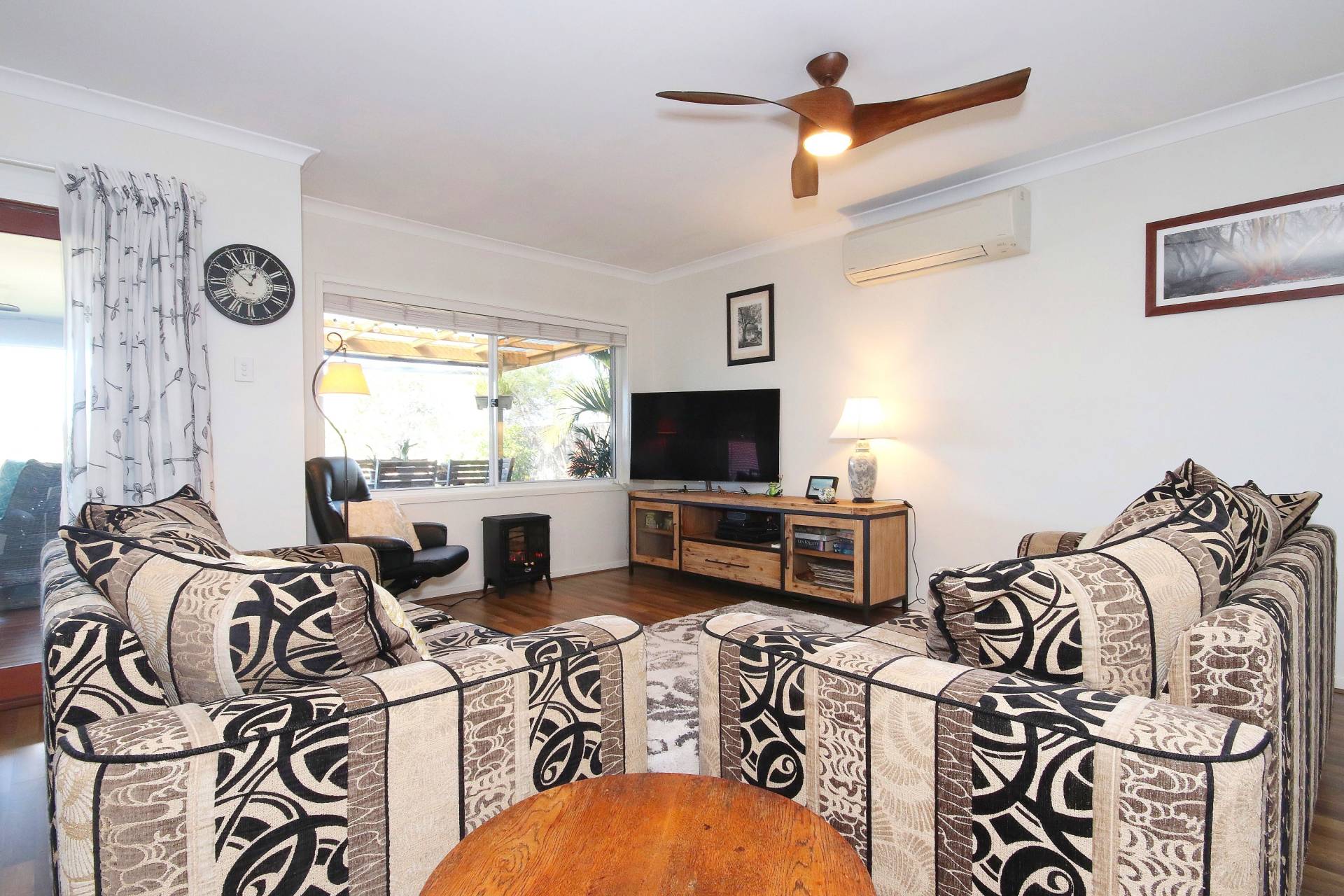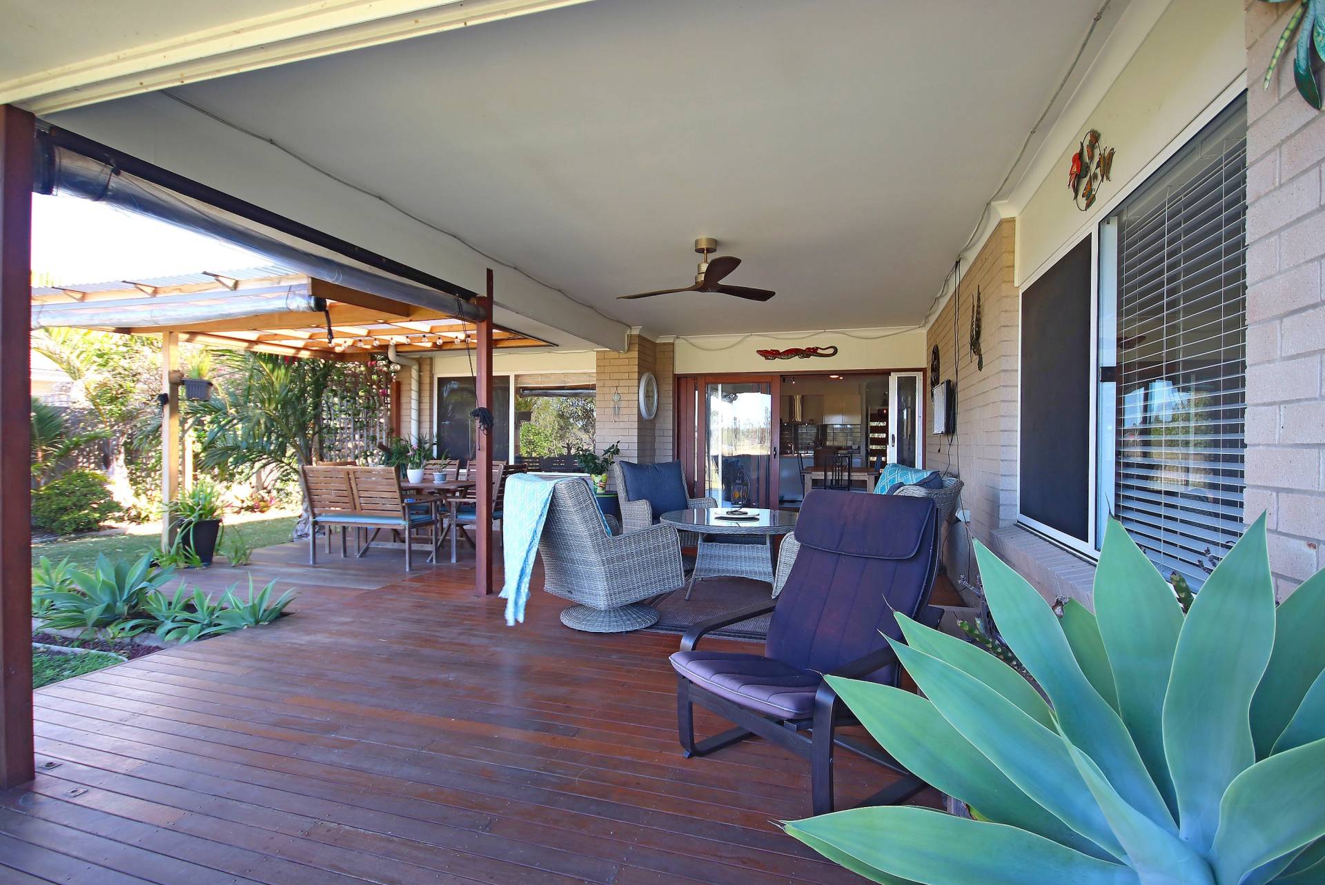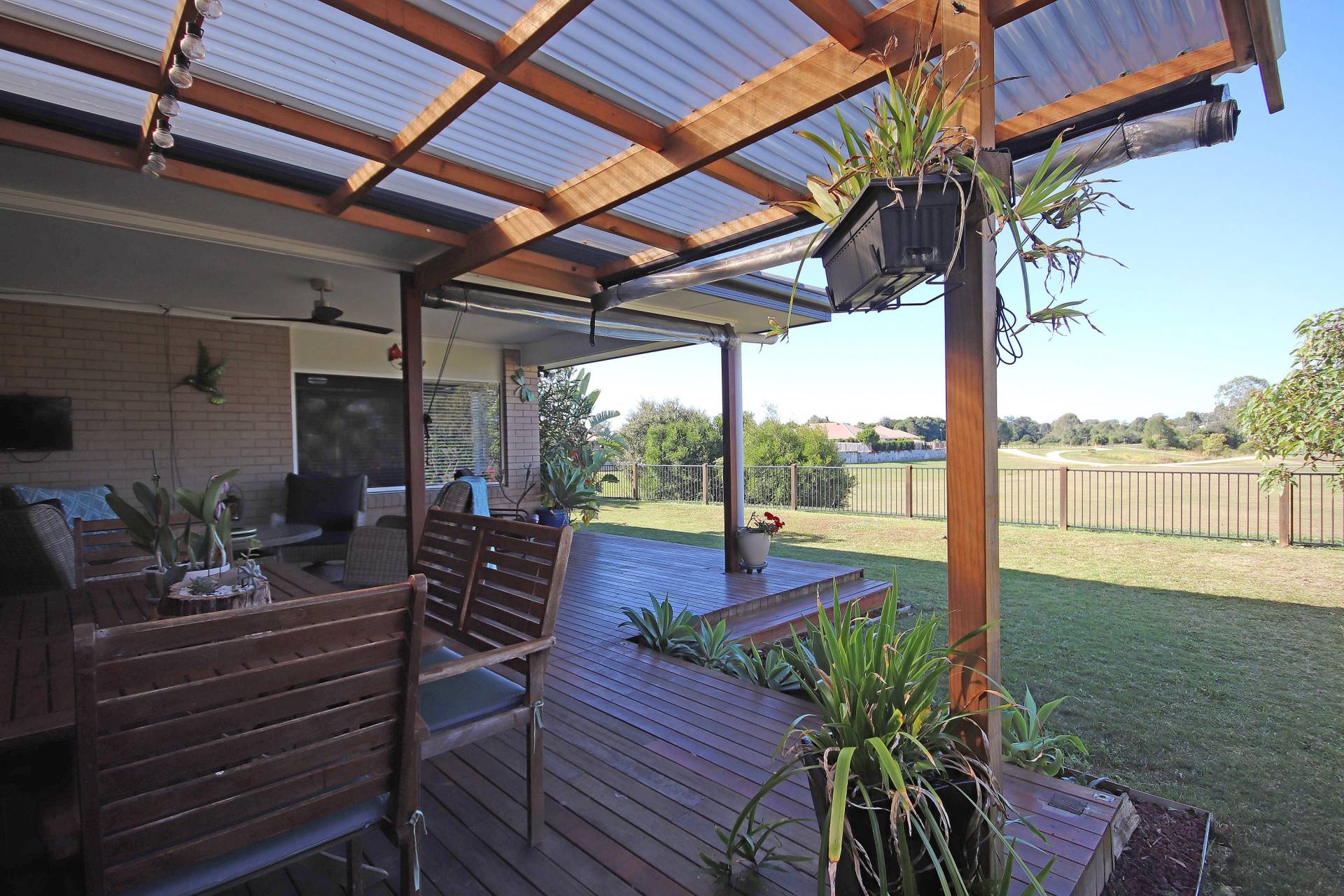 A beautifully decked undercover outdoor entertaining area, overlooking parklands is also a feature of this home.