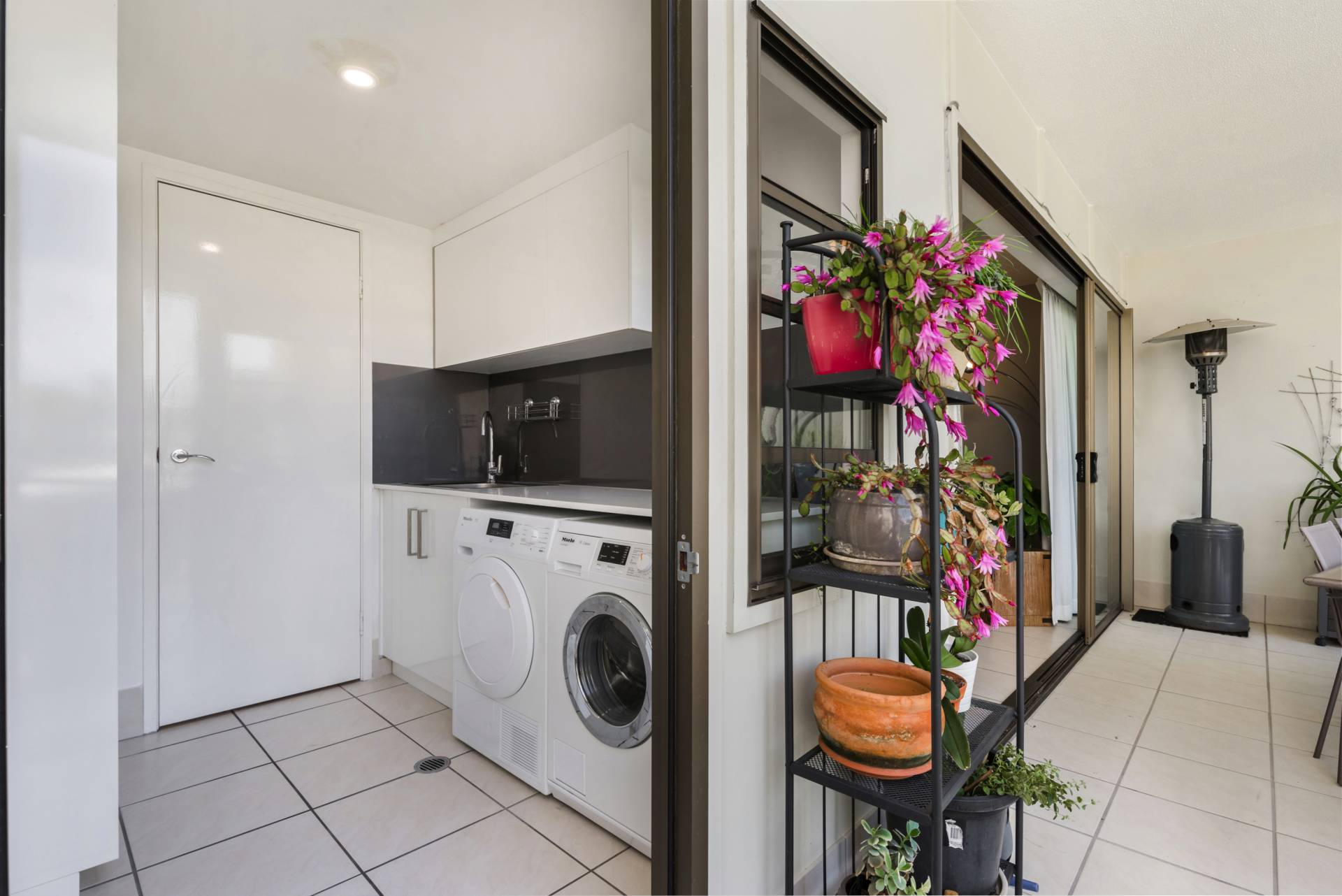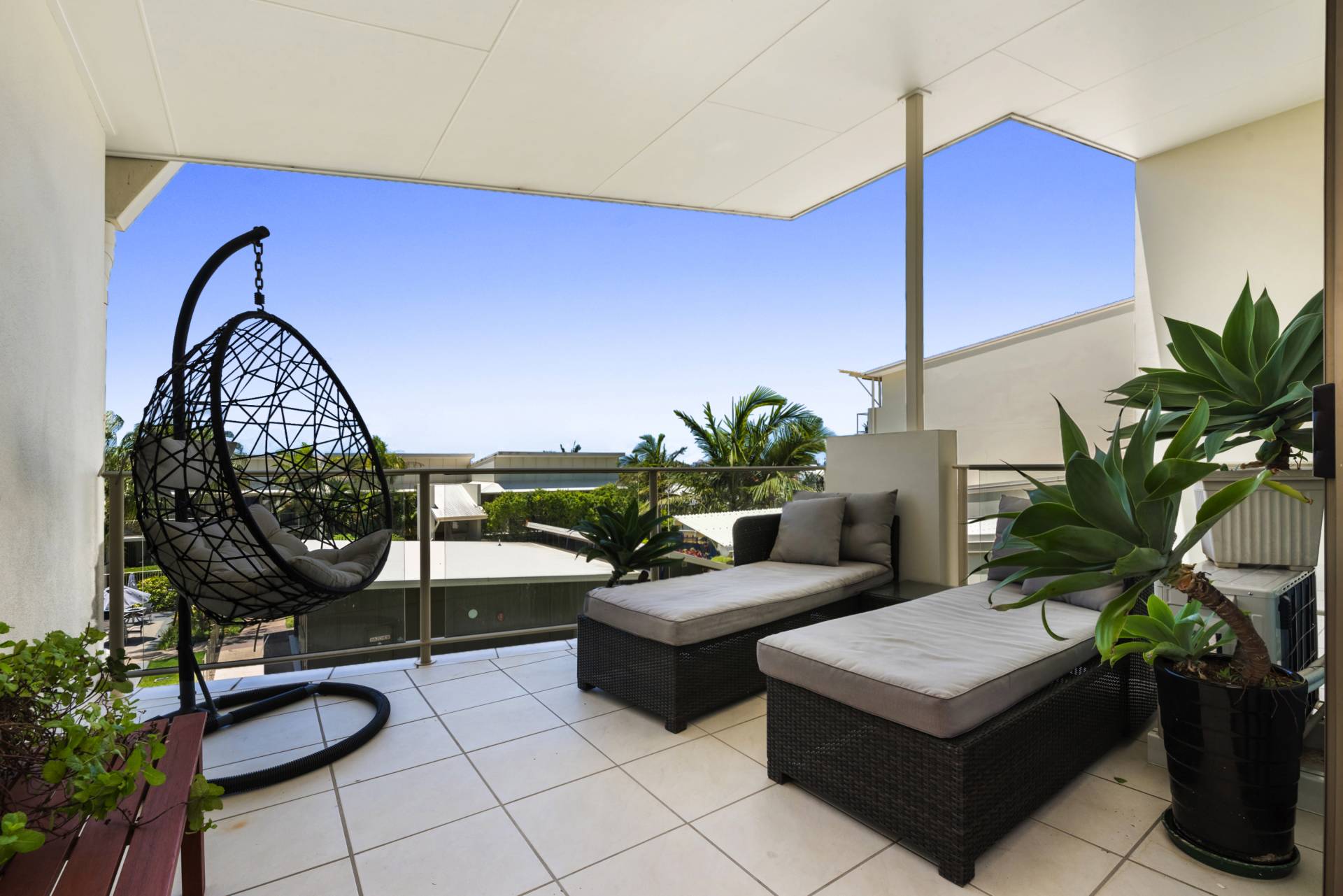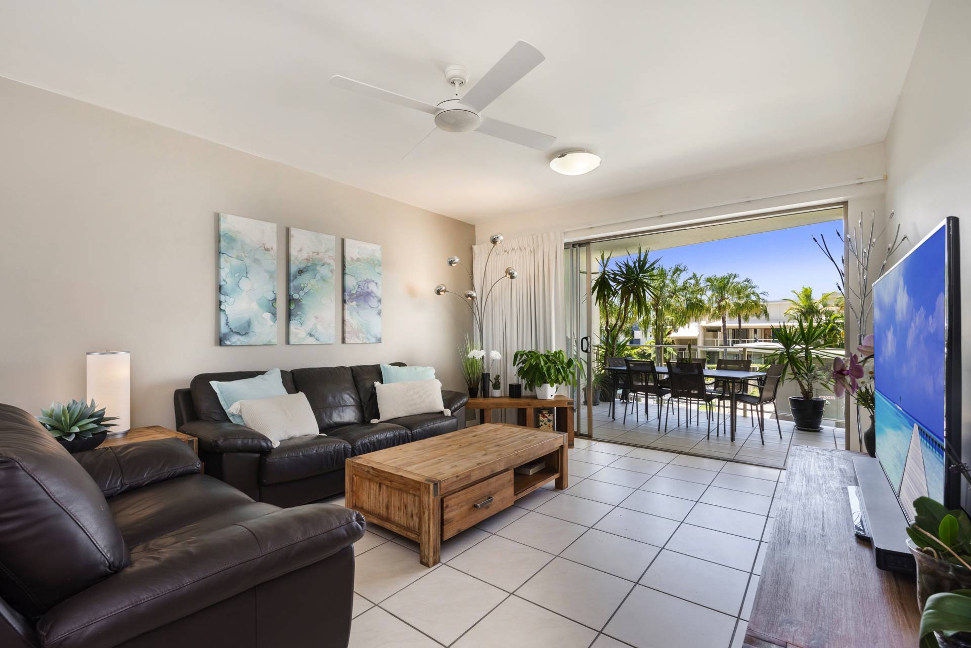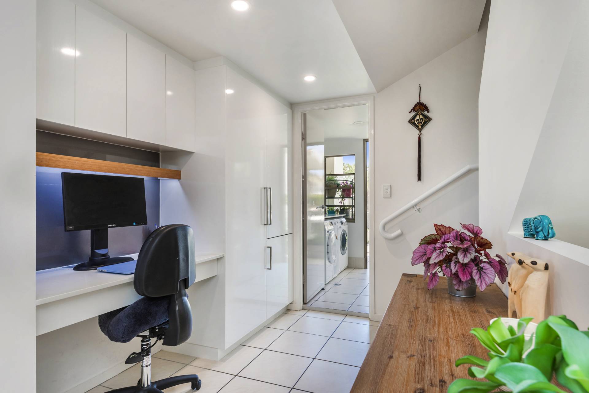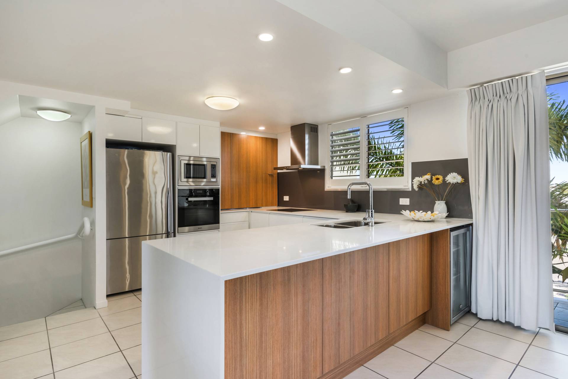 This unique and large 184M2 renovated multi level apartment with its own private entrance located a few steps up from the ground floor and offering ample storage space is truly amazing! It is one of only 2 spacious executive style townhouse apartments in the sought after Leeward Resort Complex and is now available for you to purchase.  It is an Entertainers delight offering a massive balcony out from the Lounge where the large glass stacked doors can be pushed right back to extend this area and take in the wonderful idyllic and tropical surrounds on offer to the astute buyer. It is also very soundproof between floors and offers great separation from living areas to top floor where bedrooms and bathrooms are located. There are also 3 more balconies located throughout this beautiful Townhouse which features a newly renovated kitchen, white with light wood contrasts and a new Miele Induction Cook Top and Oven together with built in Microwave. There is plenty of bench space to prepare a great meal or give yourself a treat and wander over to the ever popular Green Zebra or Mykies by the Bay and enjoy a great meal and water views.  It offers a proper house sized kitchen, there is a study nook, ample storage and integrated Fridge and Freezer beside the ample sized laundry with toilet conveniently located opposite with both adjoining outside door and windows.