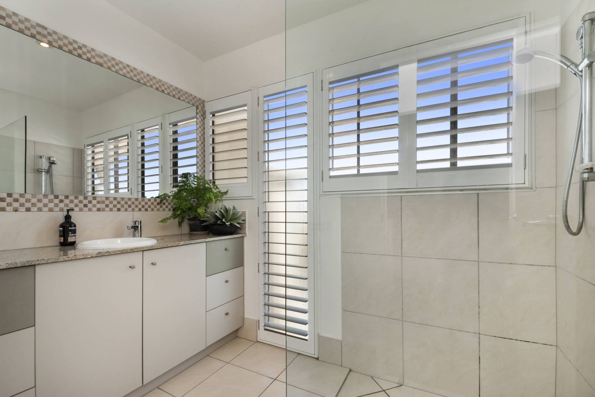 As the 2 bedrooms are located upstairs on the top floor you can enjoy peace and quiet with no-one above and the Master ensuite is very large with spa bath, double vanities and stylish white shutters on the adjoining windows in both bathrooms allowing lots of extra air flow which also creates plenty of natural light throughout.  Both bedrooms are large and have new split system air-conditioners installed for your comfort but because this apartment has 2 floors with plenty of doors and windows on both sides it creates great cross ventilation throughout. There are 2 separate private car parks positioned side by side in the garage and the body corp fees are the lowest in the complex with Leeward offering so many facilities from Lagoon, Lap Pool and Spa, fully equipped gymnasium and sauna, tennis court, bike and watercraft storage and it is all so well taken care of with an onsite manager and a gardener who keeps the grounds looking superb at all times.